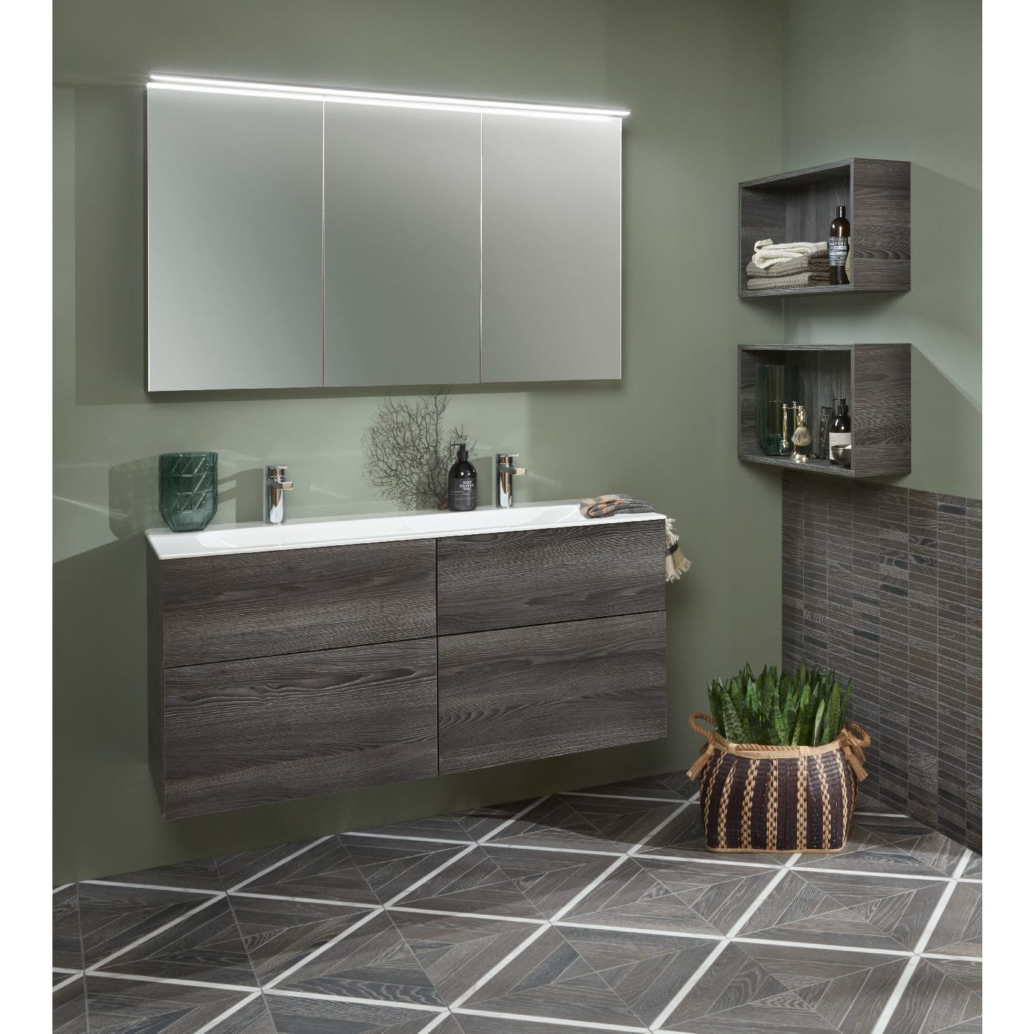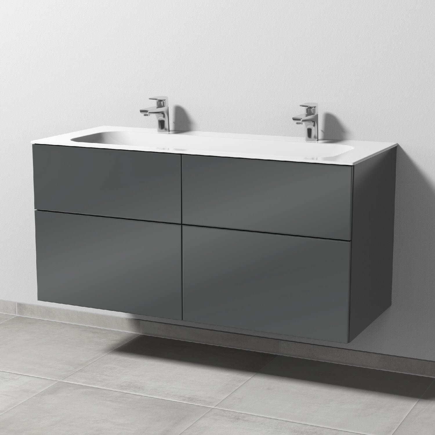 Sanipa 3way Unterschrank 120 cm, 4 Auszüge, Push to open mit Villeroy & Boch Finion Doppelwaschtisch