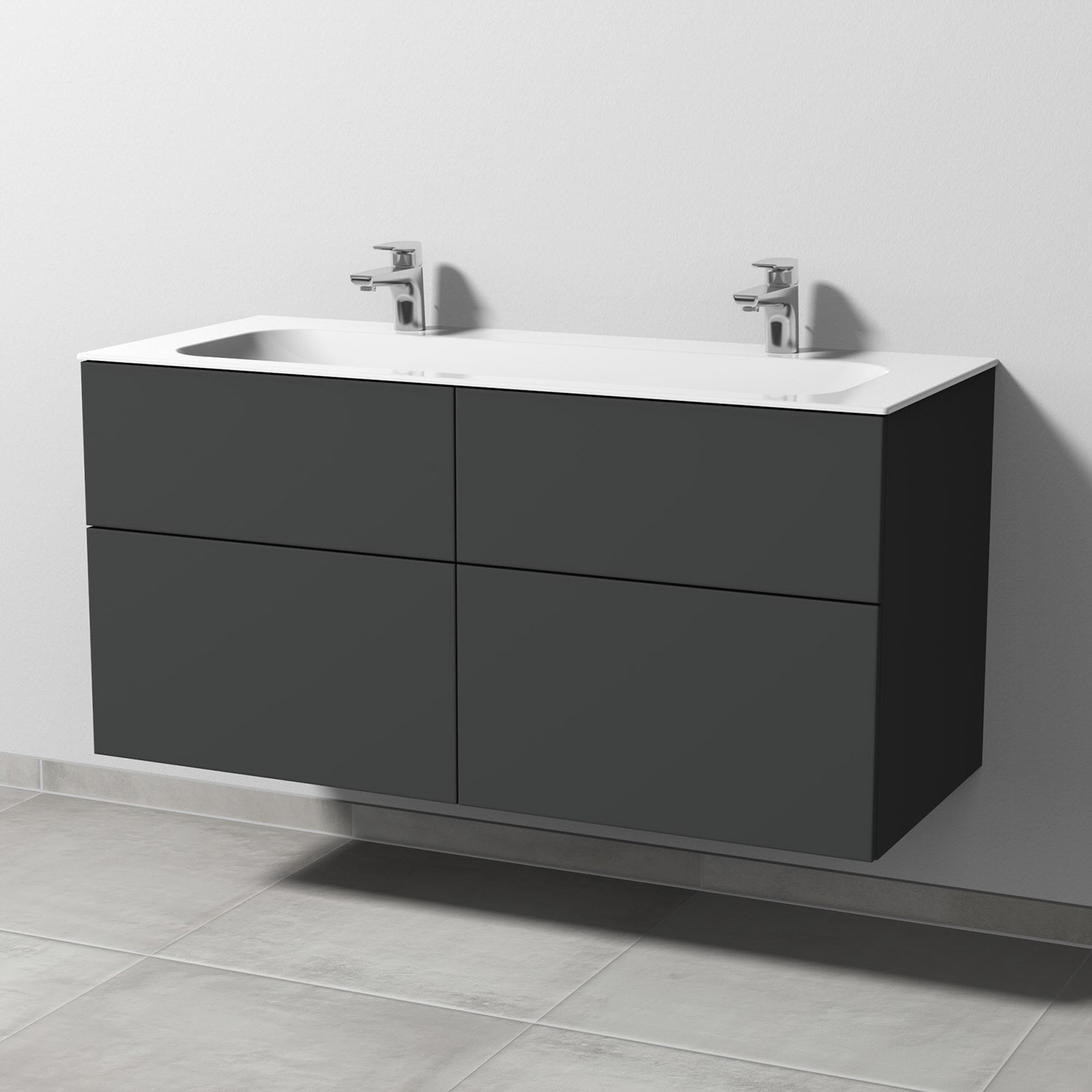 Sanipa 3way Unterschrank 120 cm, 4 Auszüge, Push to open mit Villeroy & Boch Finion Doppelwaschtisch