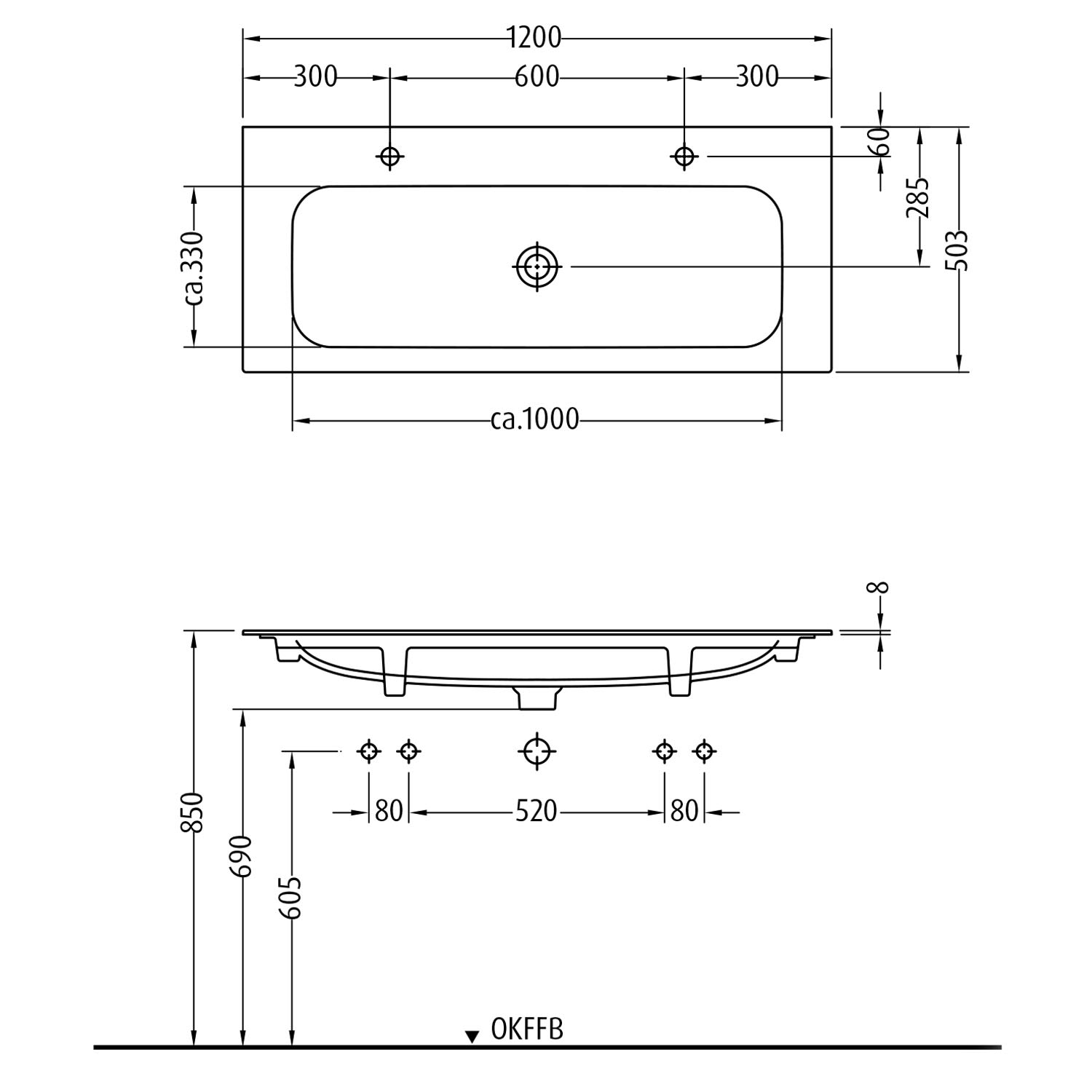 Das Set besteht aus Keramik-Waschtisch Finion und Waschtischunterbau. Farb- und Strukturabweichungen können in den Abbildungen möglich sein.