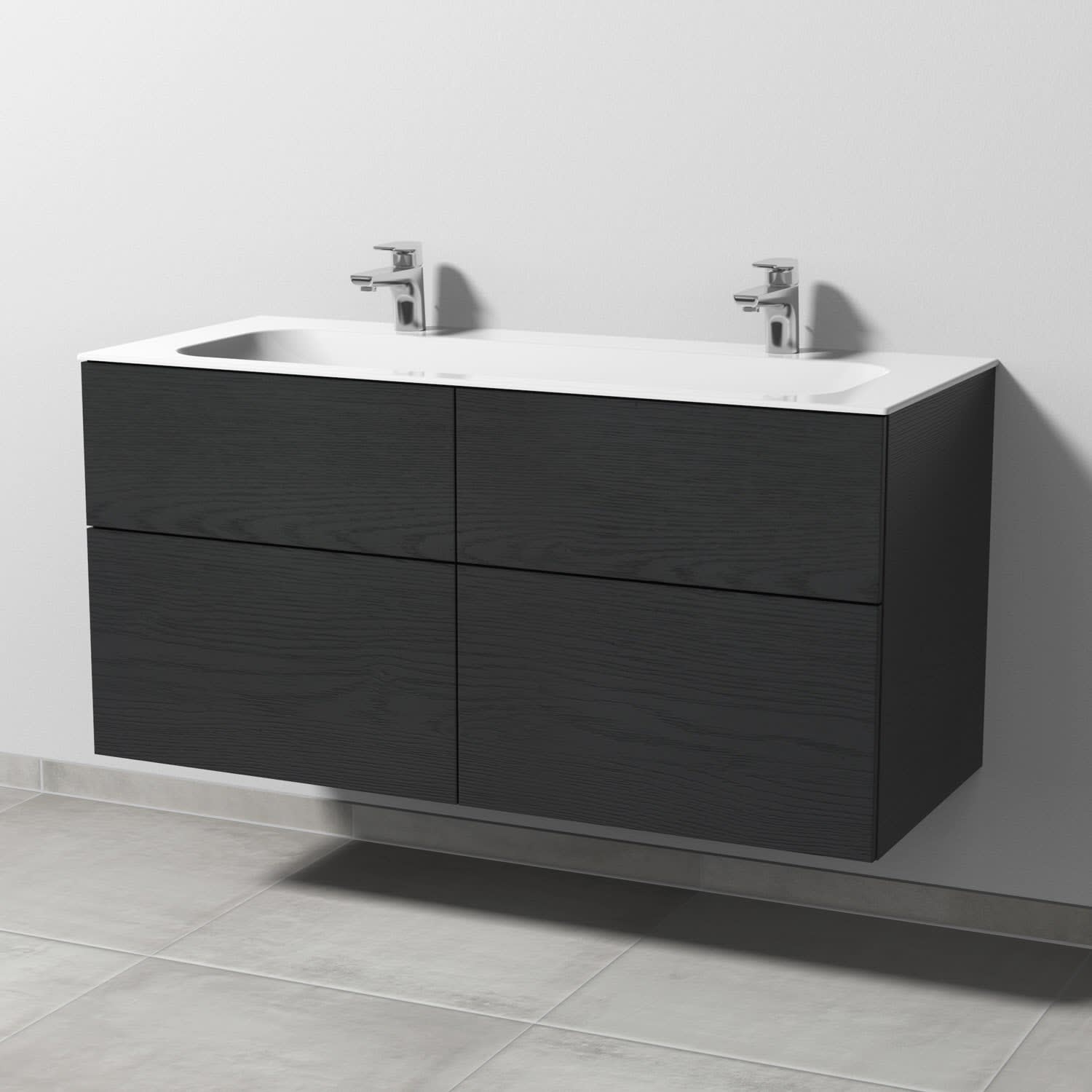 Sanipa 3way Unterschrank 120 cm, 4 Auszüge, Push to open mit Villeroy & Boch Finion Doppelwaschtisch