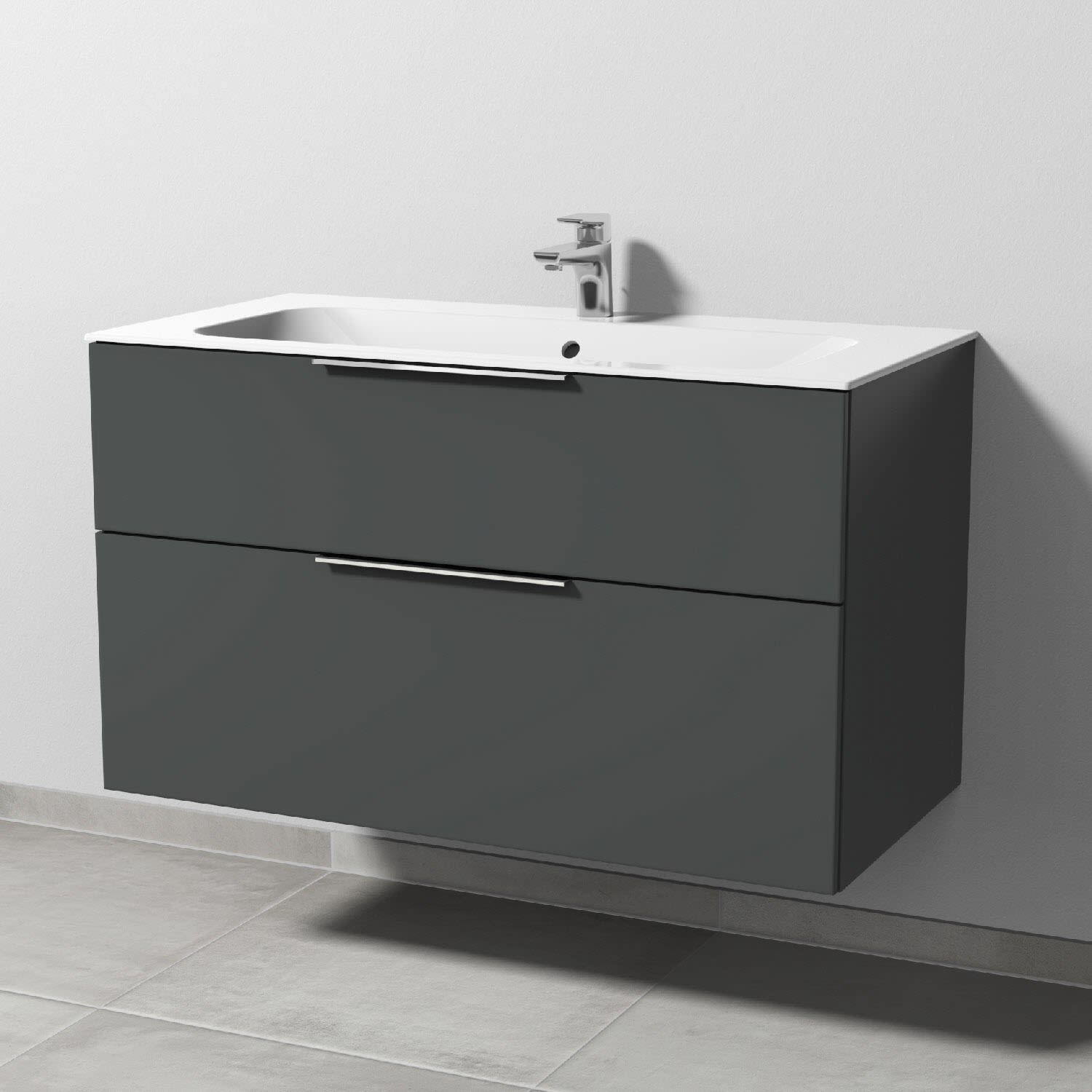Sanipa 3way Unterschrank 100 cm, 2 Auszüge, Aufsatz-Griffe schwarz matt mit Villeroy & Boch Finion Waschtisch