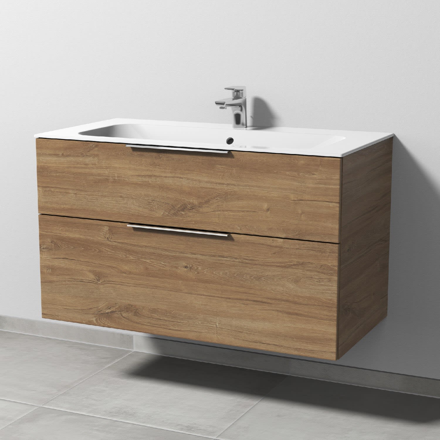 Sanipa 3way Unterschrank 100 cm, 2 Auszüge, Aufsatz-Griffe schwarz matt mit Villeroy & Boch Finion Waschtisch