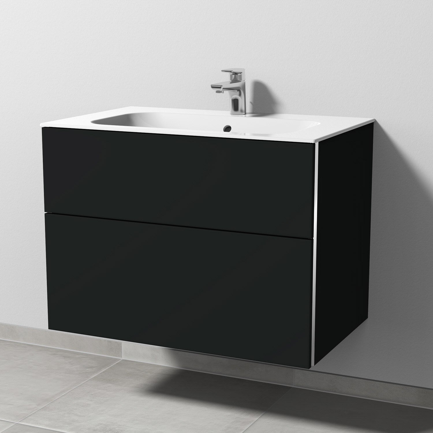 Sanipa 3way Unterschrank 80 cm, 2 Auszüge, Griff-Leisten mit Villeroy & Boch Finion Waschtisch