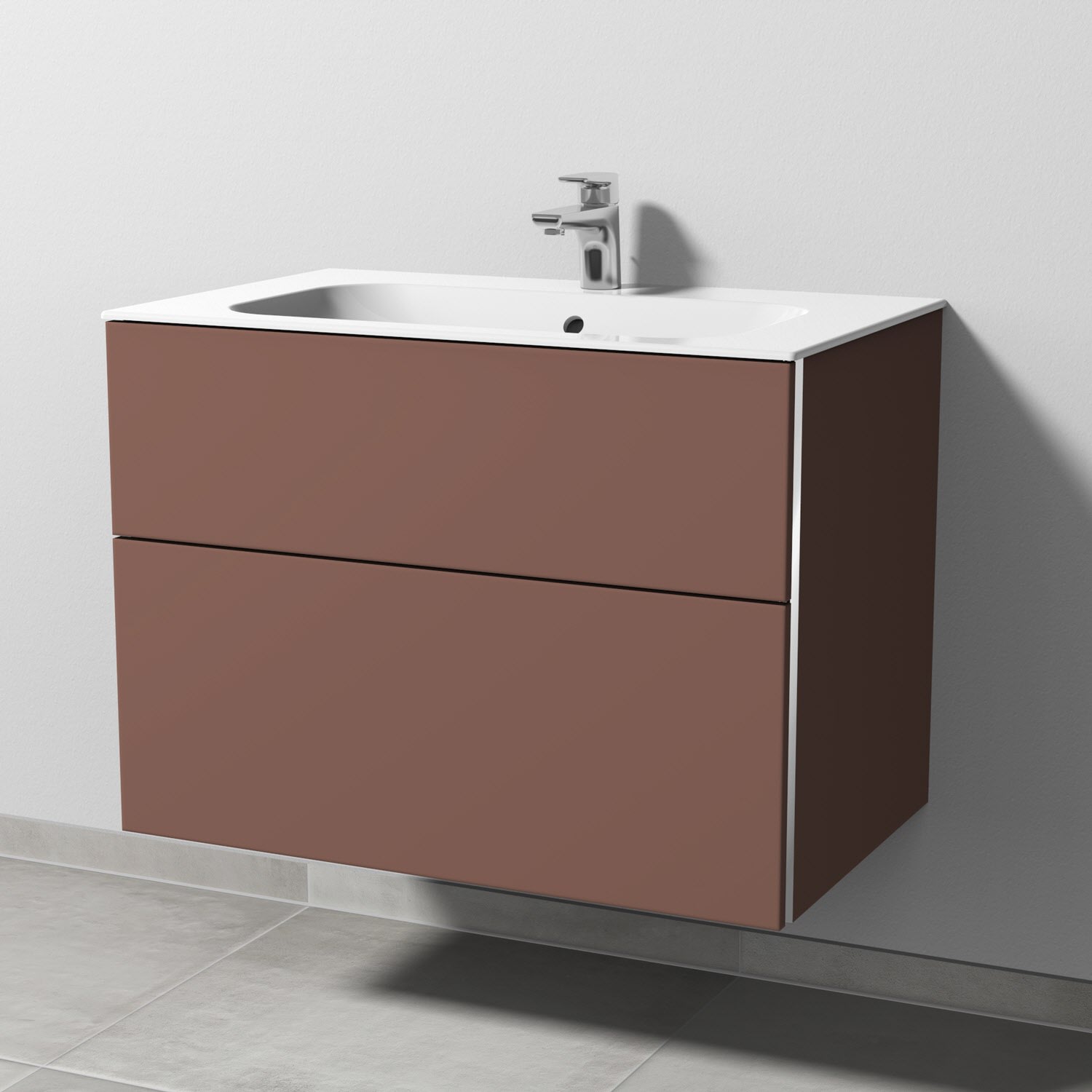 Sanipa 3way Unterschrank 80 cm, 2 Auszüge, Griff-Leisten mit Villeroy & Boch Finion Waschtisch