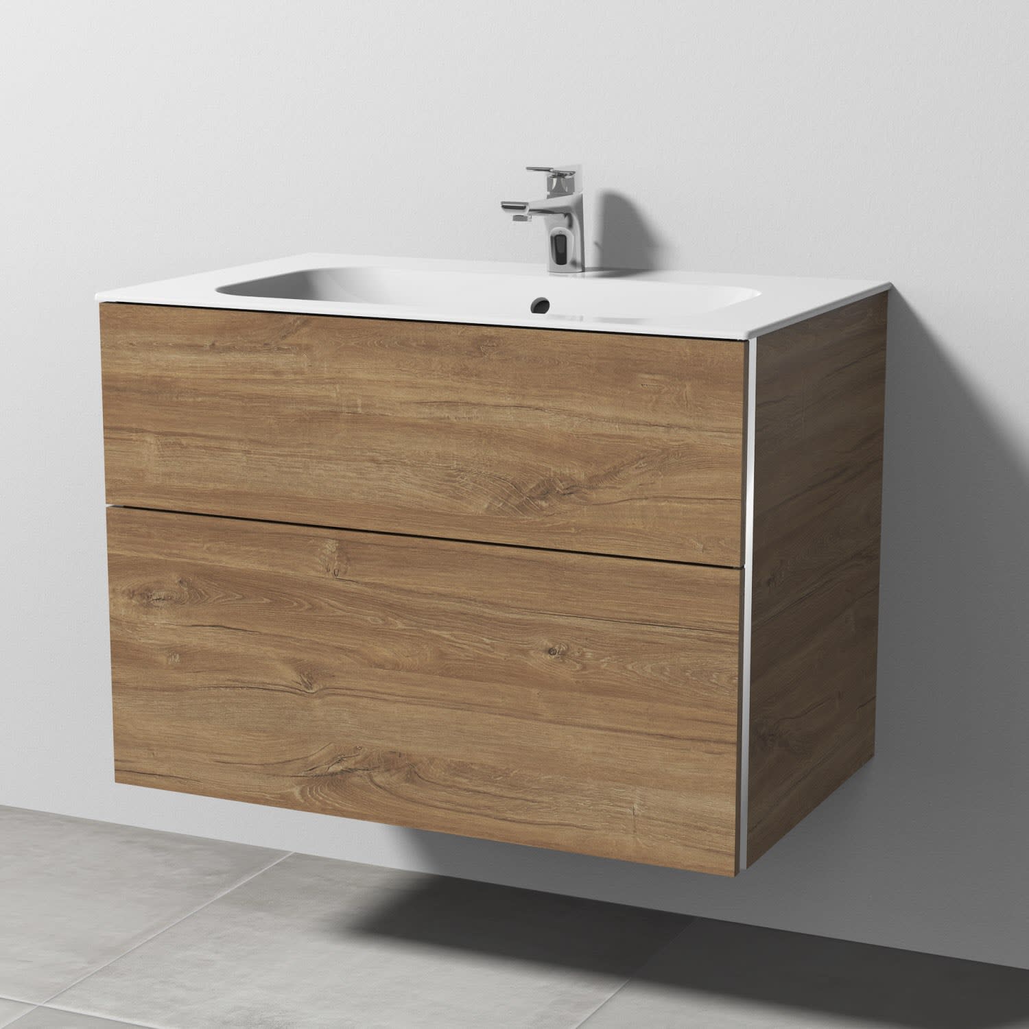 Sanipa 3way Unterschrank 80 cm, 2 Auszüge, Griff-Leisten mit Villeroy & Boch Finion Waschtisch
