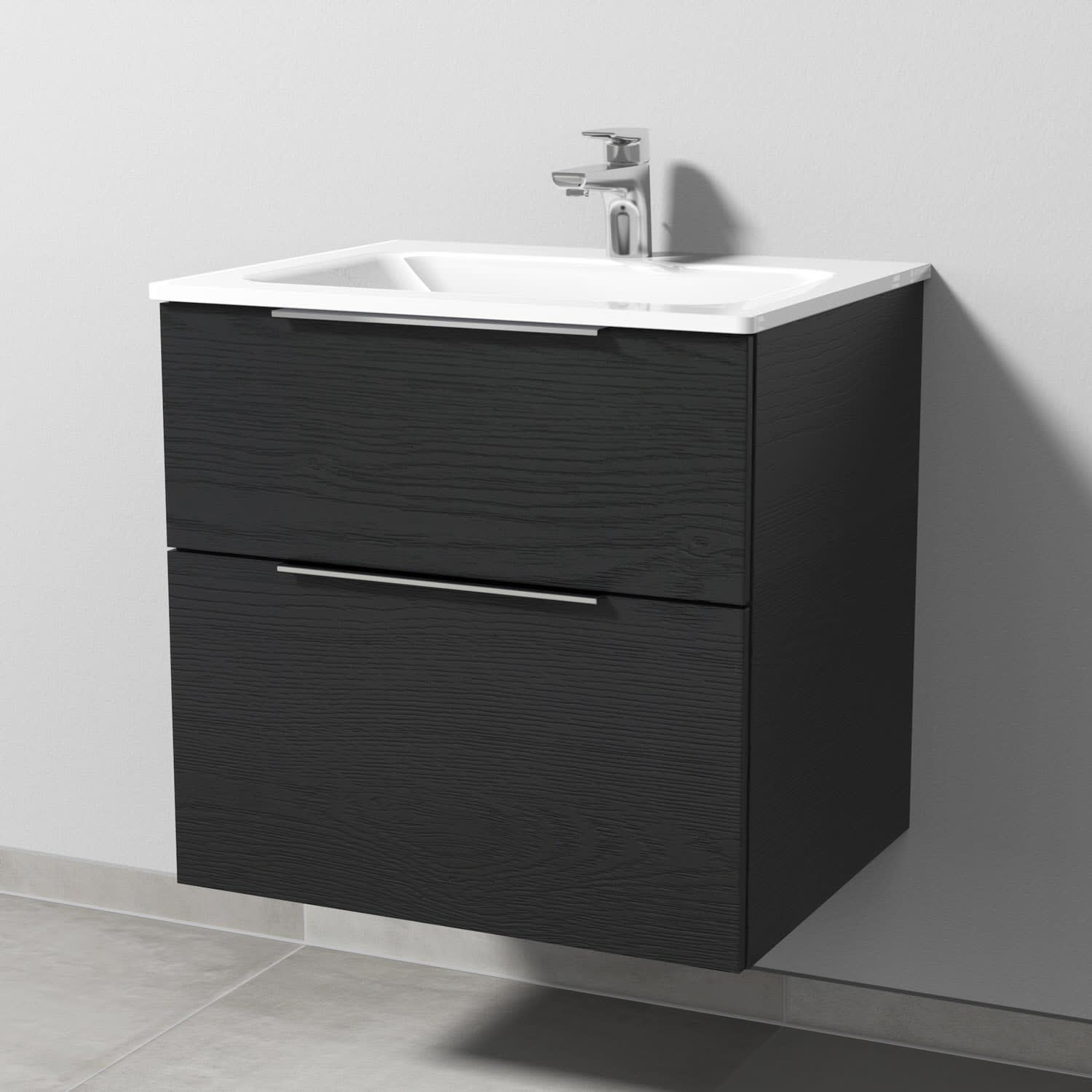 Sanipa 3way Kombination mit Glaswaschtisch 61,5 cm, 2 Auszüge mit Aufsatz-Griff