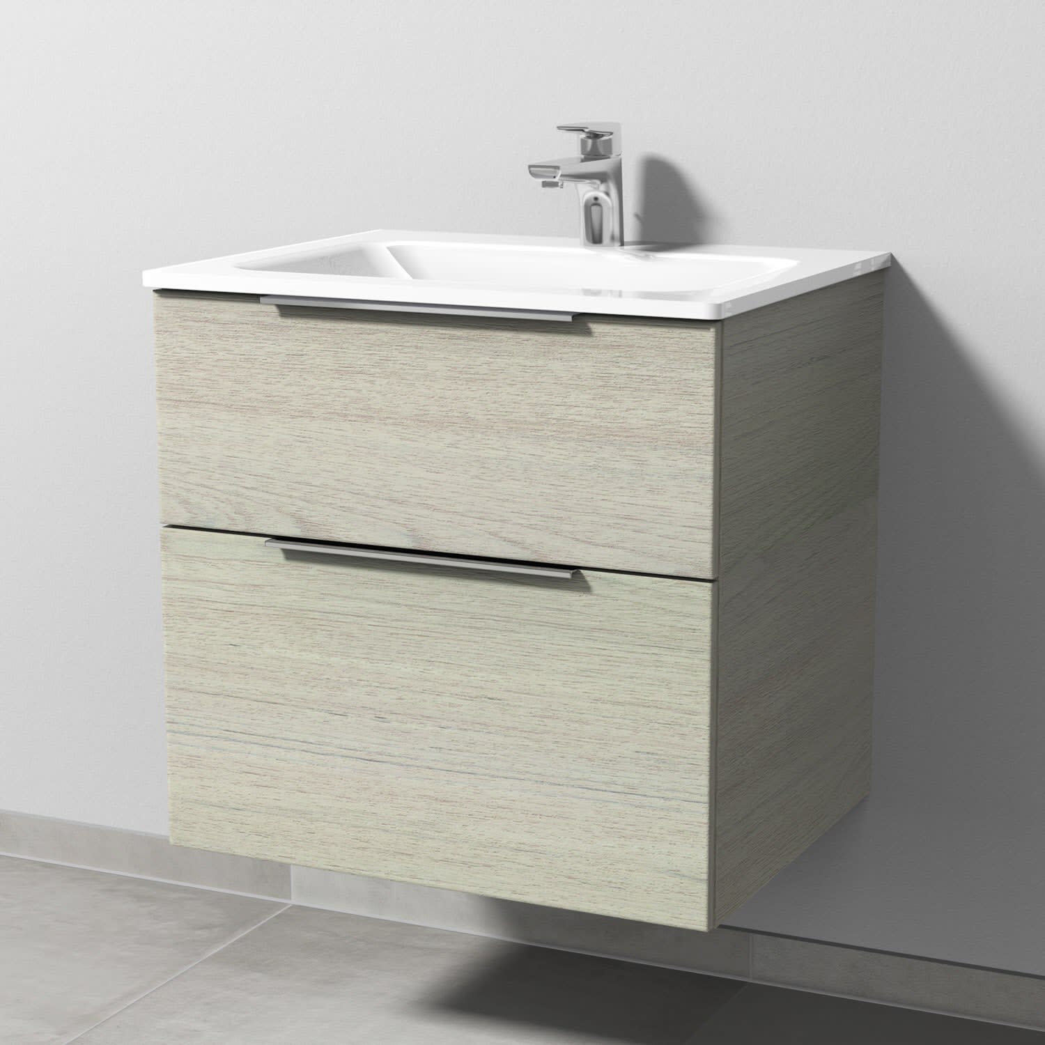 Sanipa 3way Kombination mit Glaswaschtisch 61,5 cm, 2 Auszüge mit Aufsatz-Griff