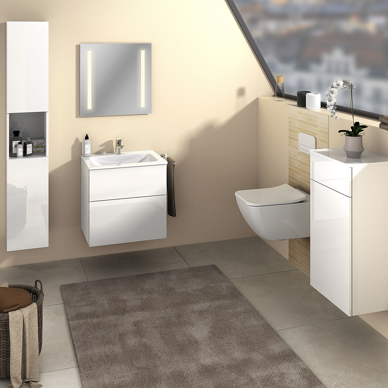 Sanipa 3way Kombination mit Glaswaschtisch 61,5 cm, 2 Auszüge mit Push to open