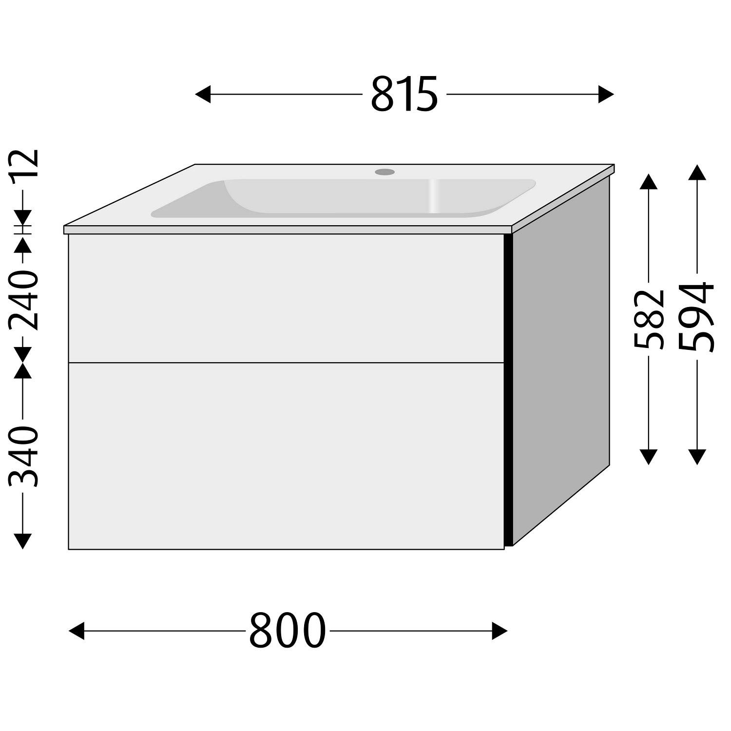 Sanipa 3way Kombination mit Glaswaschtisch 81,5 cm, 2 Auszüge mit Aufsatz-Griff
