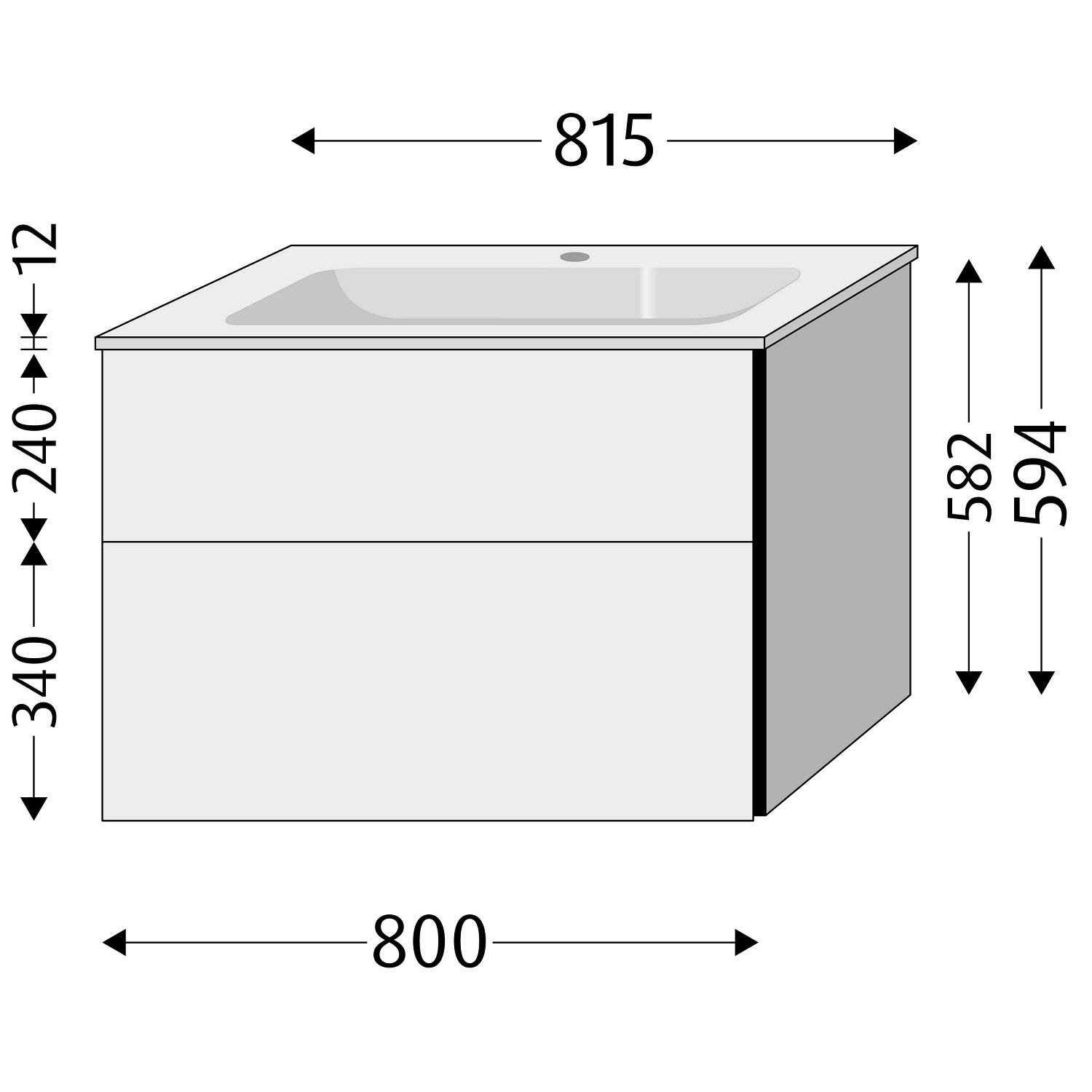 Sanipa 3way Kombination mit Glaswaschtisch 81,5 cm, 2 Auszüge mit Aufsatz-Griff