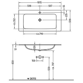 - für 1 x 1-Loch Armatur geeignet, Hahnloch durchgestochen