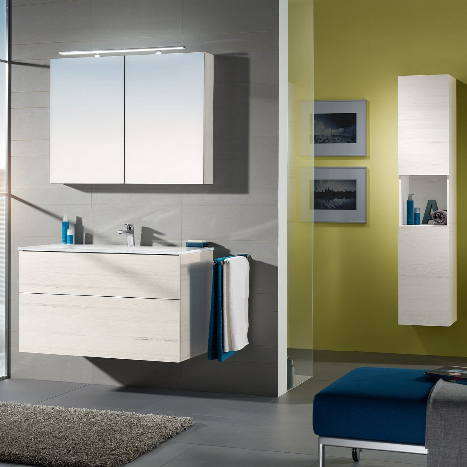 Sanipa 3way Kombination mit Glaswaschtisch 101,5 cm, 2 Auszüge mit Push to open