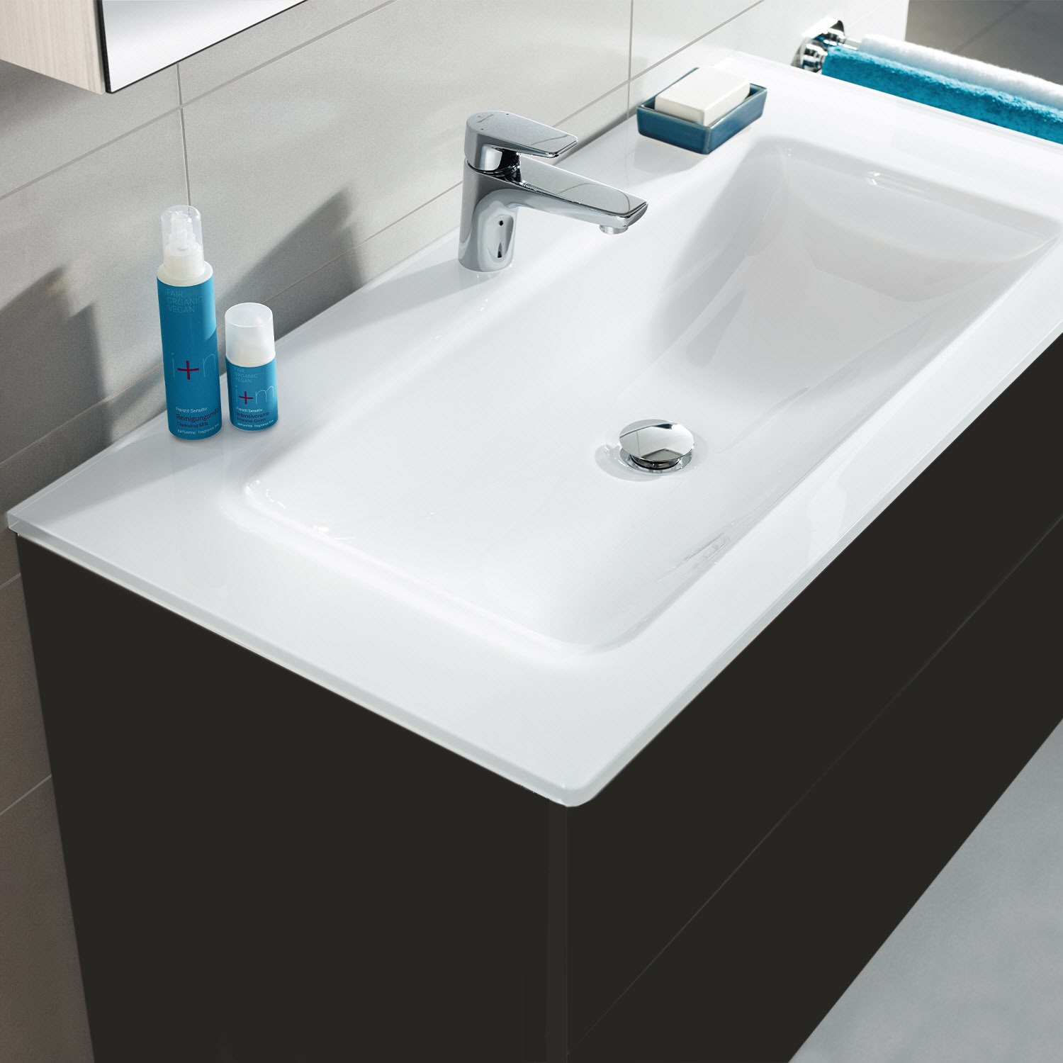 - für 1 x 1-Loch Armatur geeignet, Hahnloch durchgestochen