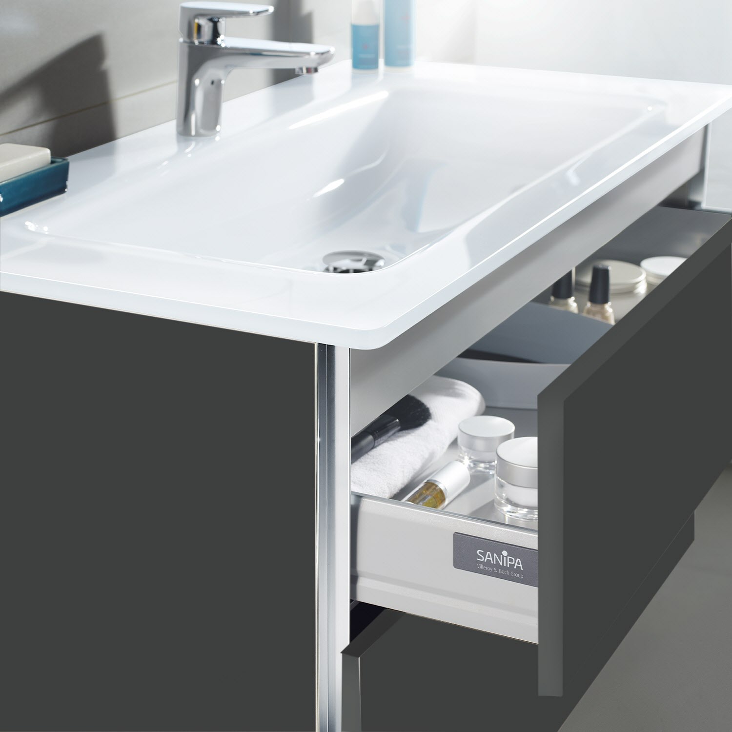 Sanipa 3way Kombination mit Glaswaschtisch 101,5 cm, 2 Auszüge