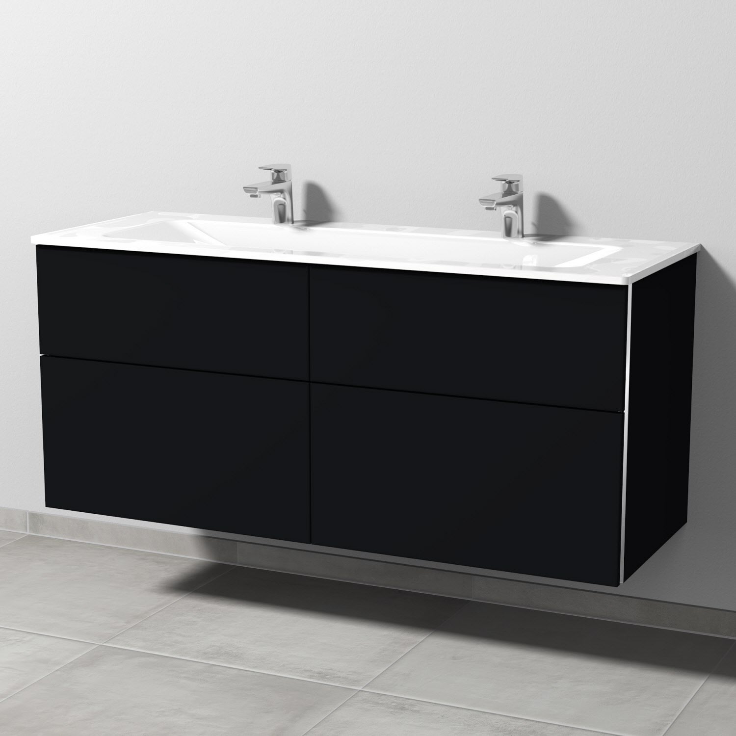 4 Auszüge mit Griff-Leiste, Doppelwaschtisch