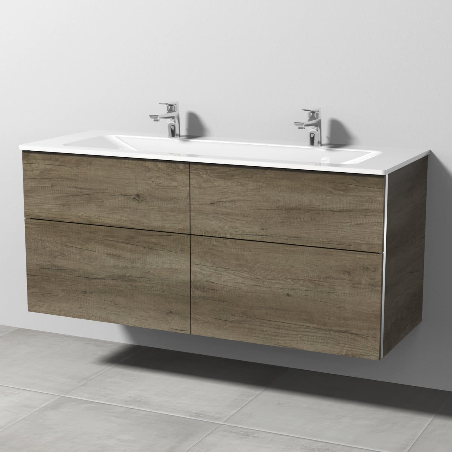 4 Auszüge mit Griff-Leiste, Doppelwaschtisch