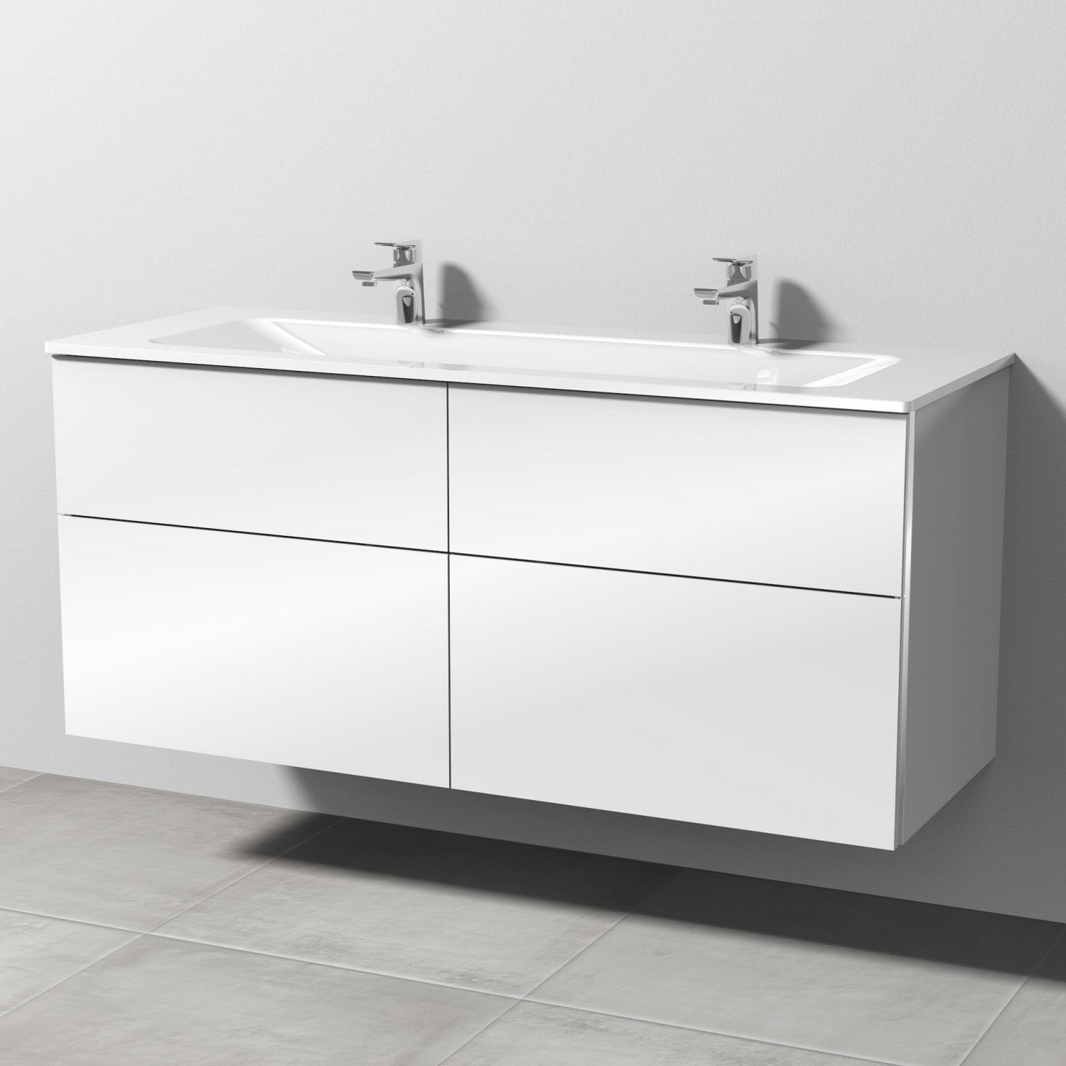 Sanipa 3way Kombination mit Glas-Doppelwaschtisch 131,5 cm, 4 Auszüge mit Griff-Leiste