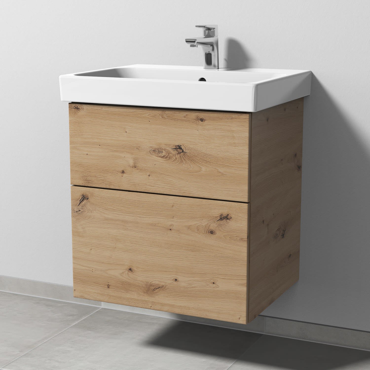 Sanipa 3way Keramikwaschtisch ProSmart mit Waschtischunterschrank 60 x 47 cm, mit 2 Auszügen