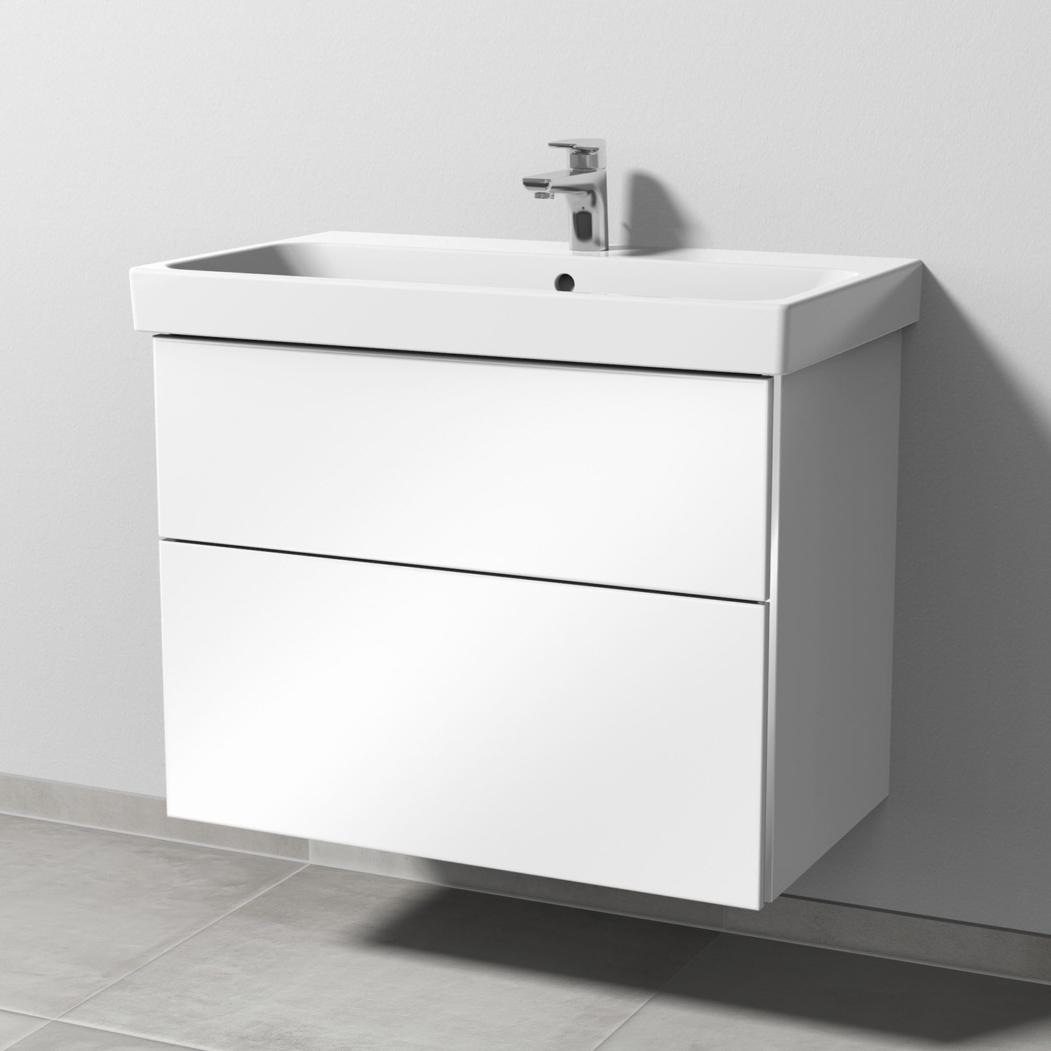 Sanipa 3way Keramikwaschtisch ProSmart mit Waschtischunterschrank 80 x 47 cm, mit 2 Auszügen
