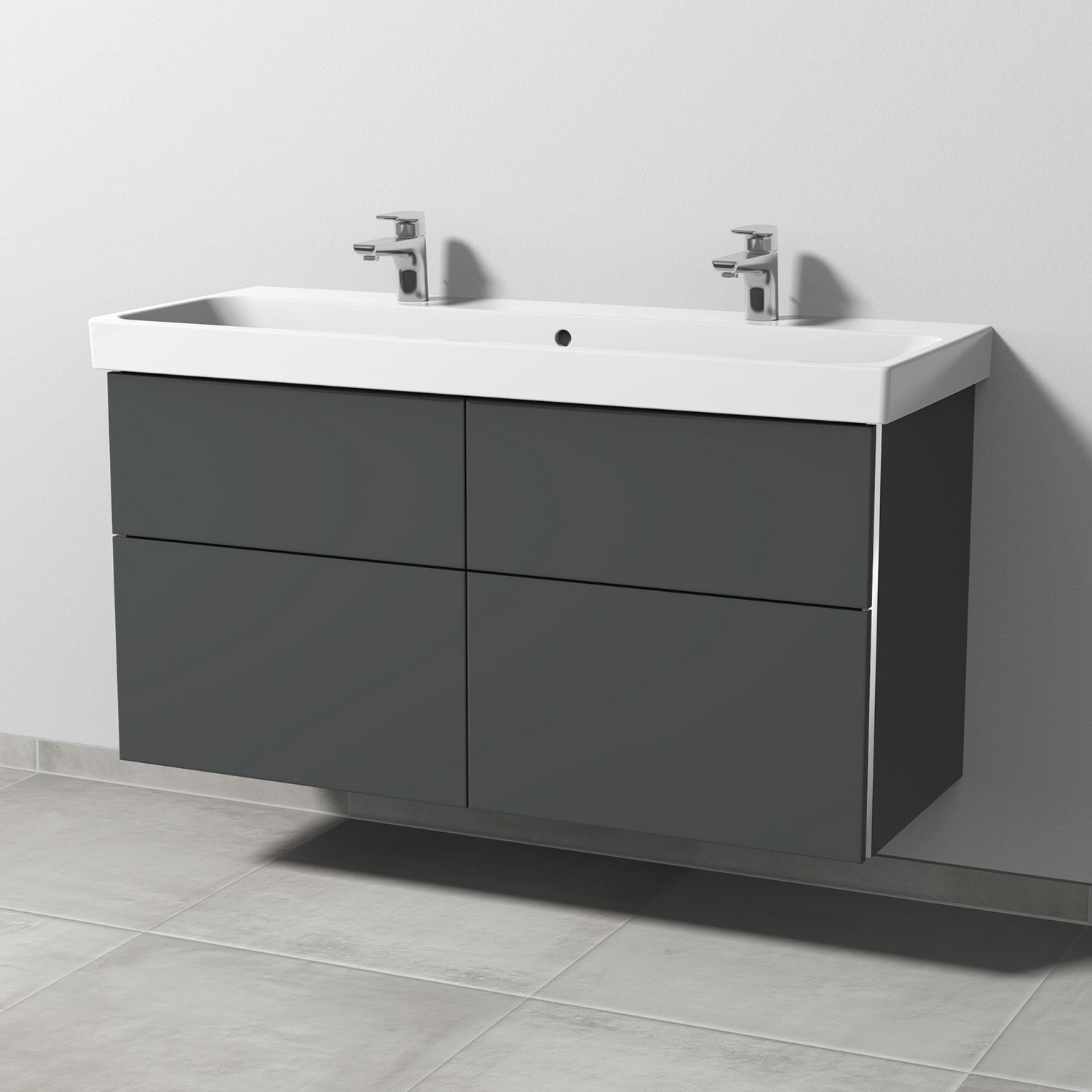 Sanipa 3way Keramik Doppelwaschtisch ProSmart mit Waschtischunterschrank 120 x 47 cm, mit 4 Auszügen