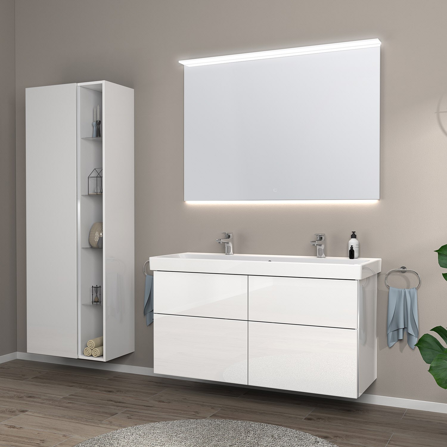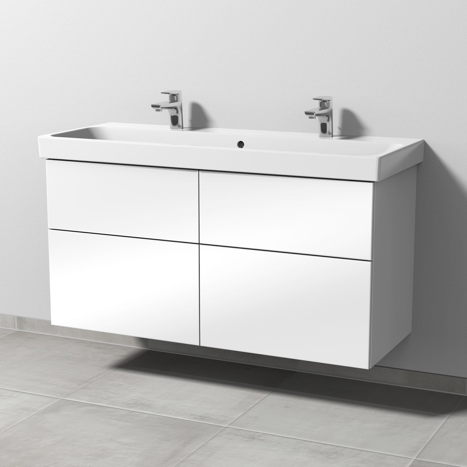 Sanipa 3way Keramik Doppelwaschtisch ProSmart mit Waschtischunterschrank 120 x 47 cm, mit 4 Auszügen