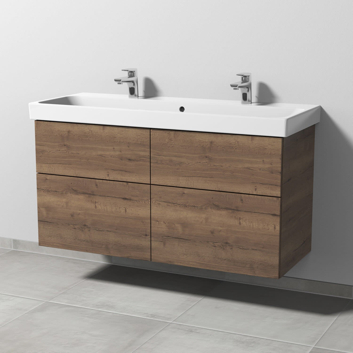 Sanipa 3way Keramik Doppelwaschtisch ProSmart mit Waschtischunterschrank 120 x 47 cm, mit 4 Auszügen