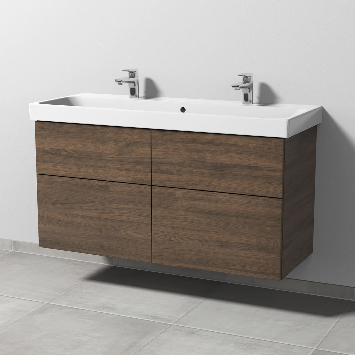 Sanipa 3way Keramik Doppelwaschtisch ProSmart mit Waschtischunterschrank 120 x 47 cm, mit 4 Auszügen