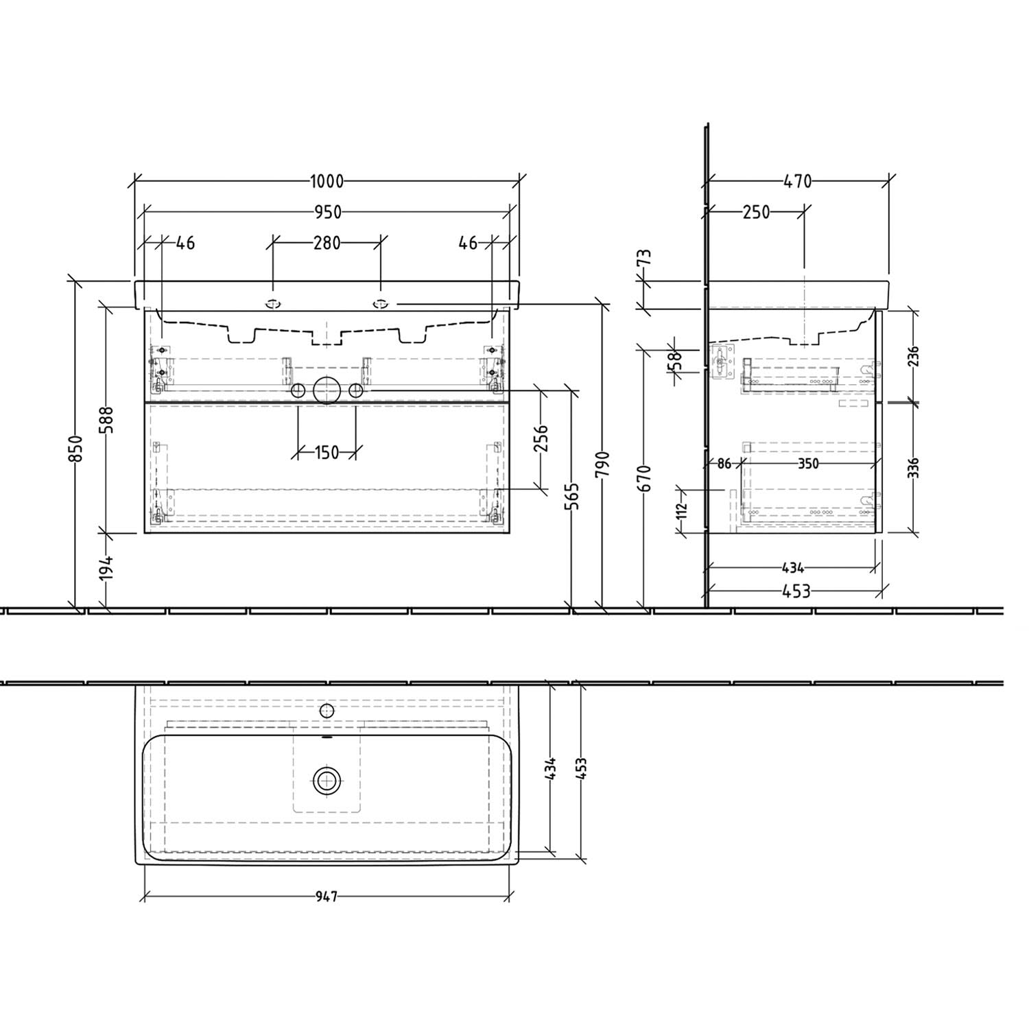 - Maße: Tiefe 47 cm, Höhe 7,3 cm, Tiefe Beckenkumme 12 cm
