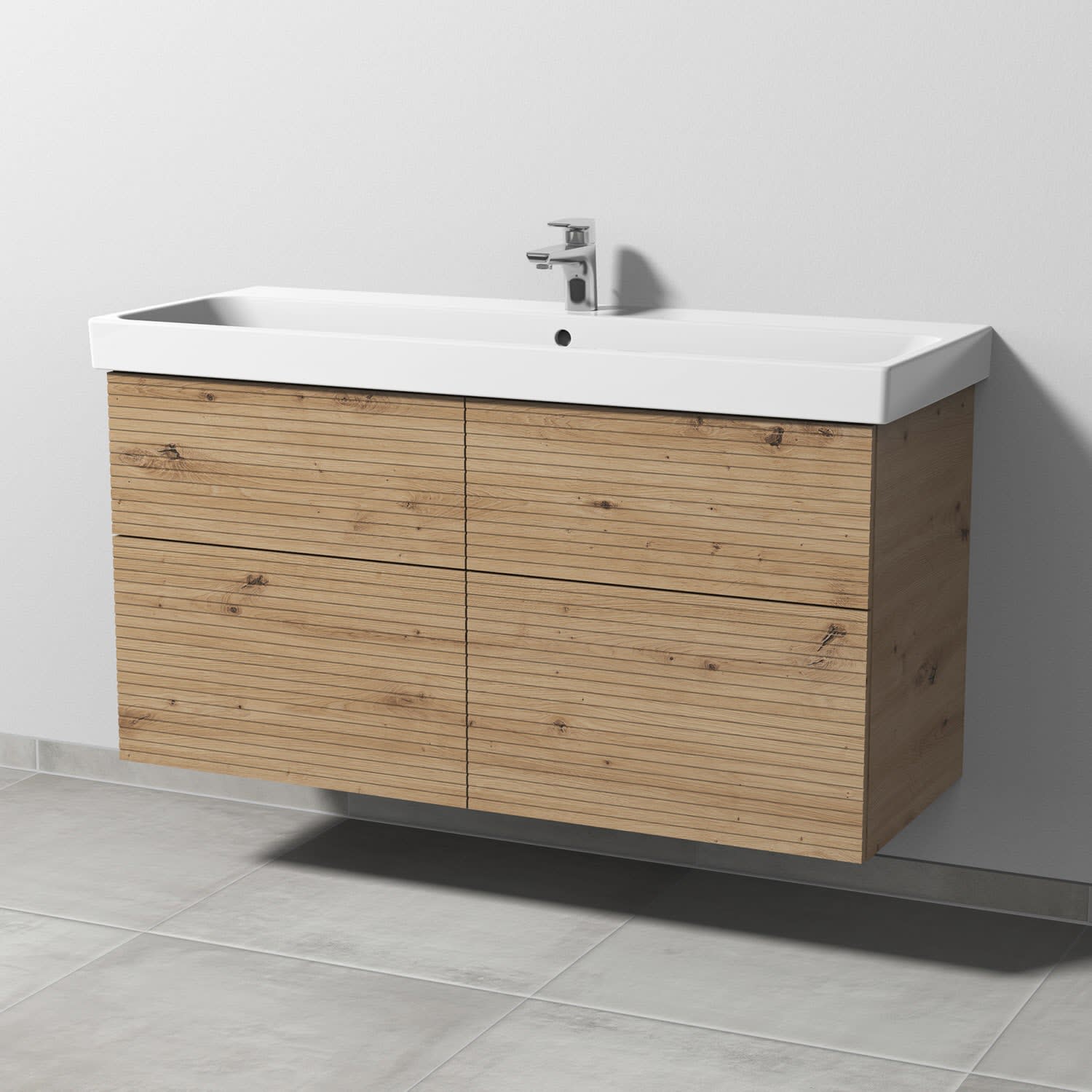 Sanipa 3way-Struktur Keramikwaschtisch ProSmart mit Waschtischunterschrank 120 x 47 cm, 4 Auszüge