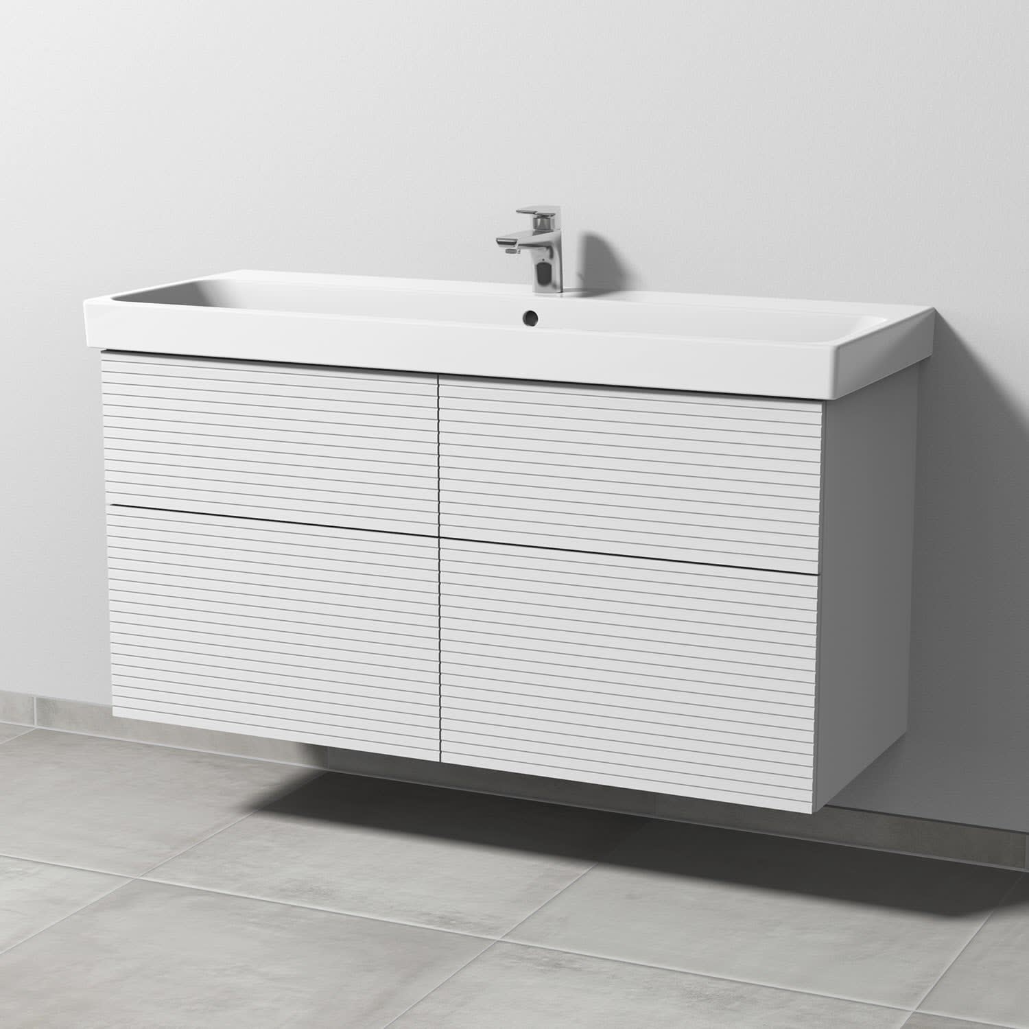 Sanipa 3way-Struktur Keramikwaschtisch ProSmart mit Waschtischunterschrank 120 x 47 cm, 4 Auszüge