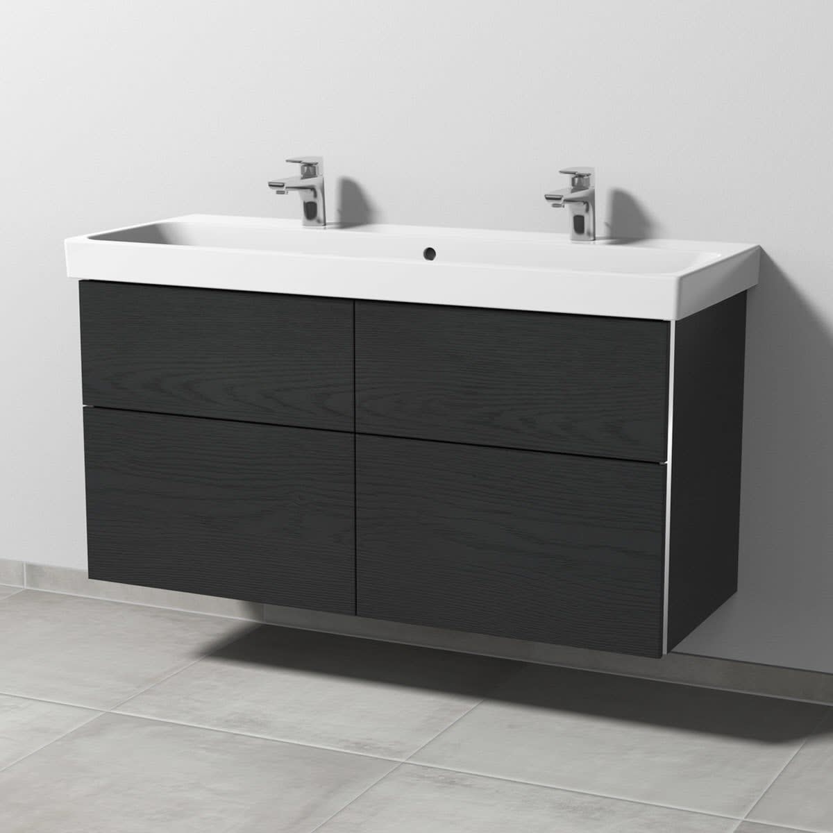 Sanipa 3way Keramik Doppelwaschtisch ProSmart mit Waschtischunterschrank 120 x 47 cm, mit 4 Auszügen