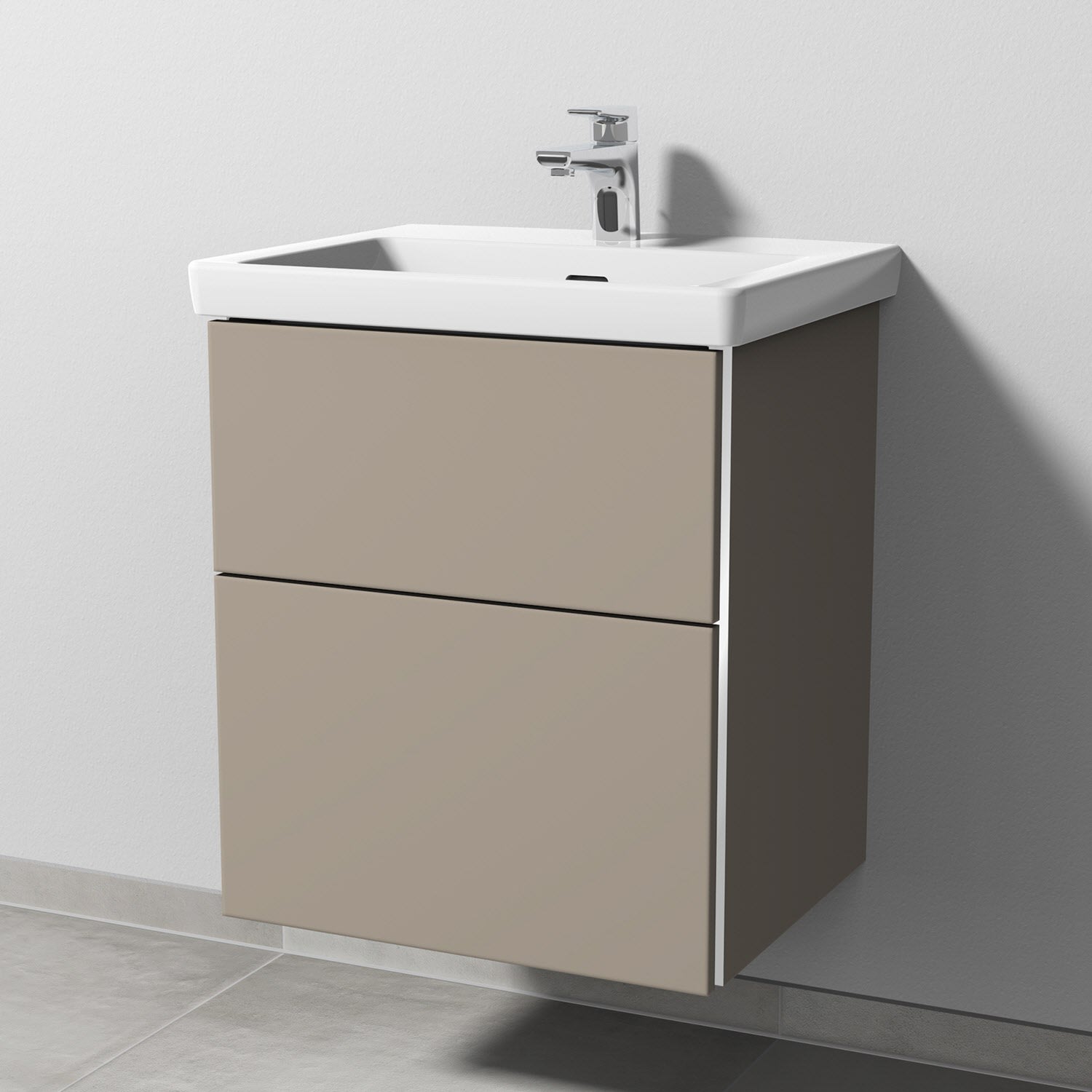 Sanipa 3way Unterschrank 55 cm, 2 Auszüge mit Villeroy & Boch Subway 3.0 Waschtisch