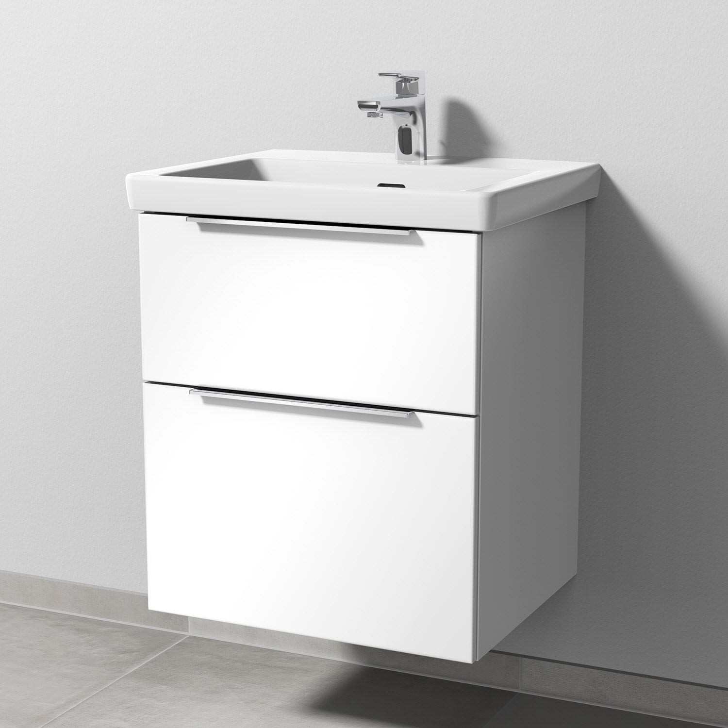 Sanipa 3way Unterschrank 55 cm, 2 Auszüge mit Villeroy & Boch Subway 3.0 Waschtisch