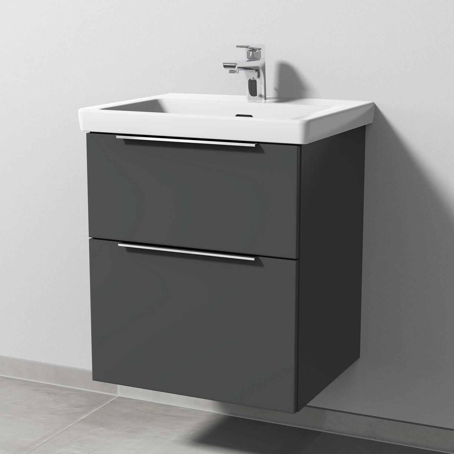 Sanipa 3way Unterschrank 55 cm, 2 Auszüge mit Villeroy & Boch Subway 3.0 Waschtisch