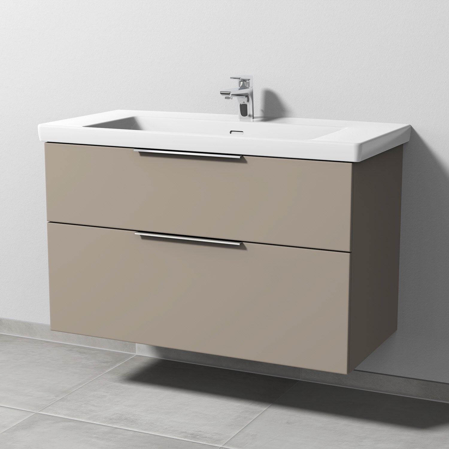 Sanipa 3way Unterschrank 100 cm, 2 Auszüge mit Villeroy & Boch Subway 3.0 Waschtisch