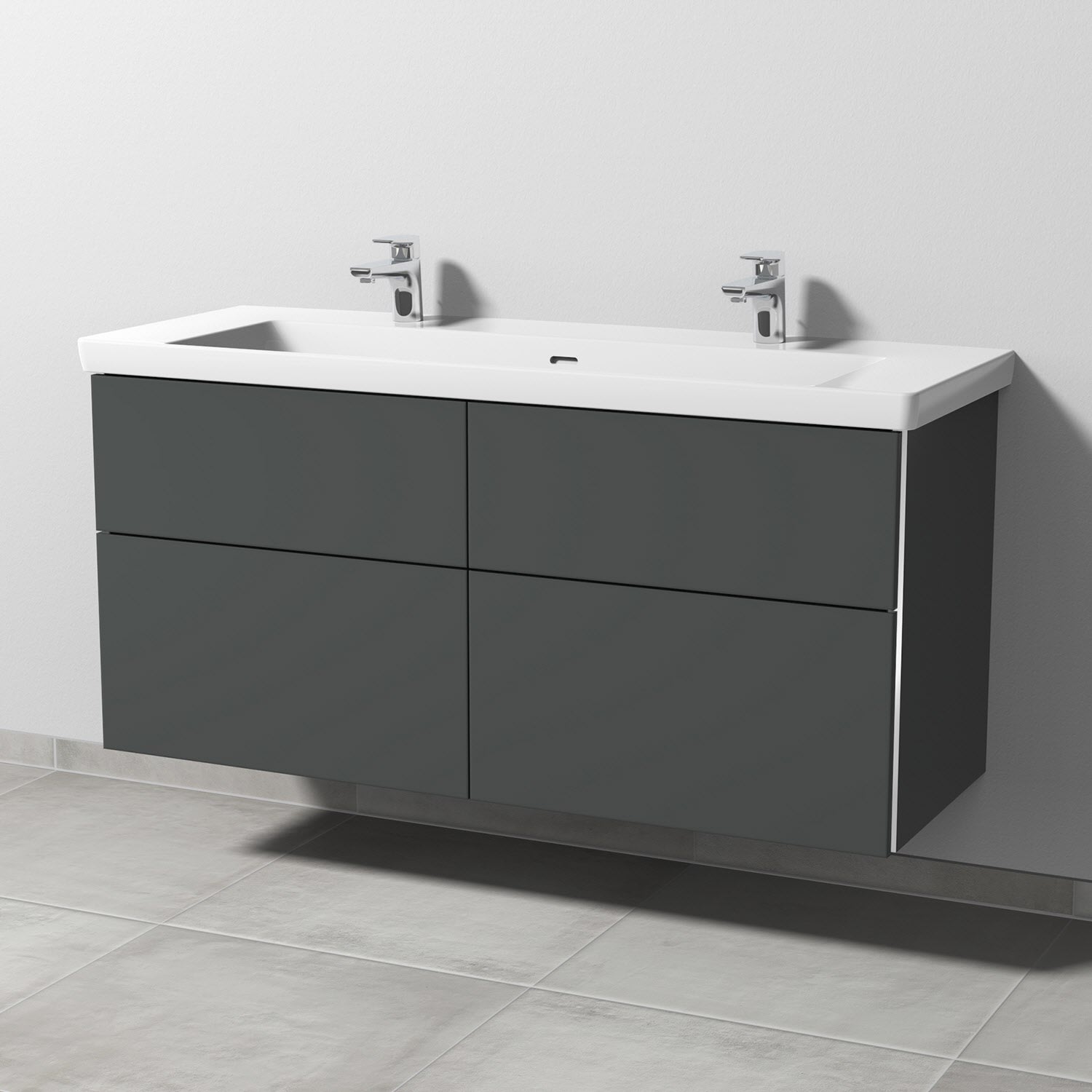 Sanipa 3way Unterschrank 130 cm, 4 Auszüge mit Villeroy & Boch Subway 3.0 Doppelwaschtisch