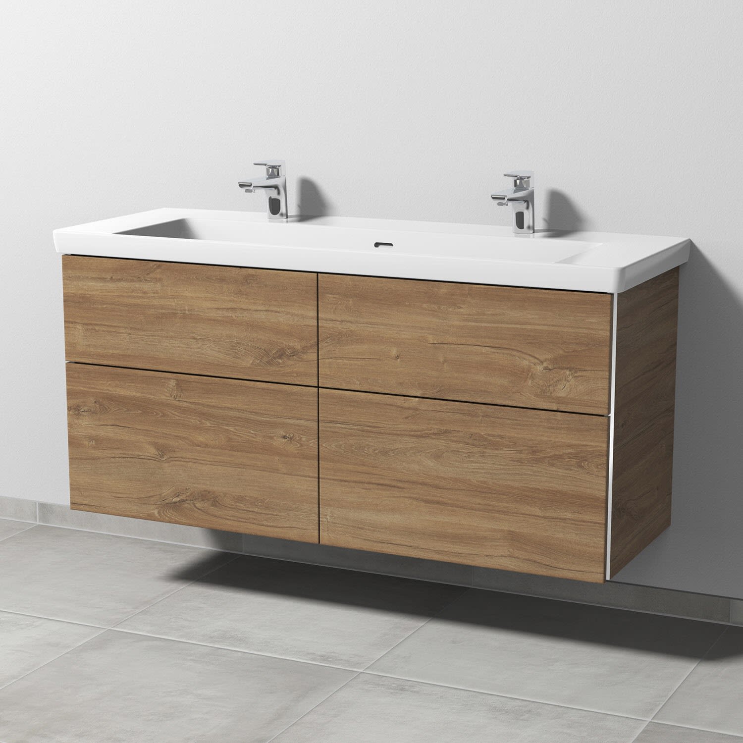 Sanipa 3way Unterschrank 130 cm, 4 Auszüge mit Villeroy & Boch Subway 3.0 Doppelwaschtisch