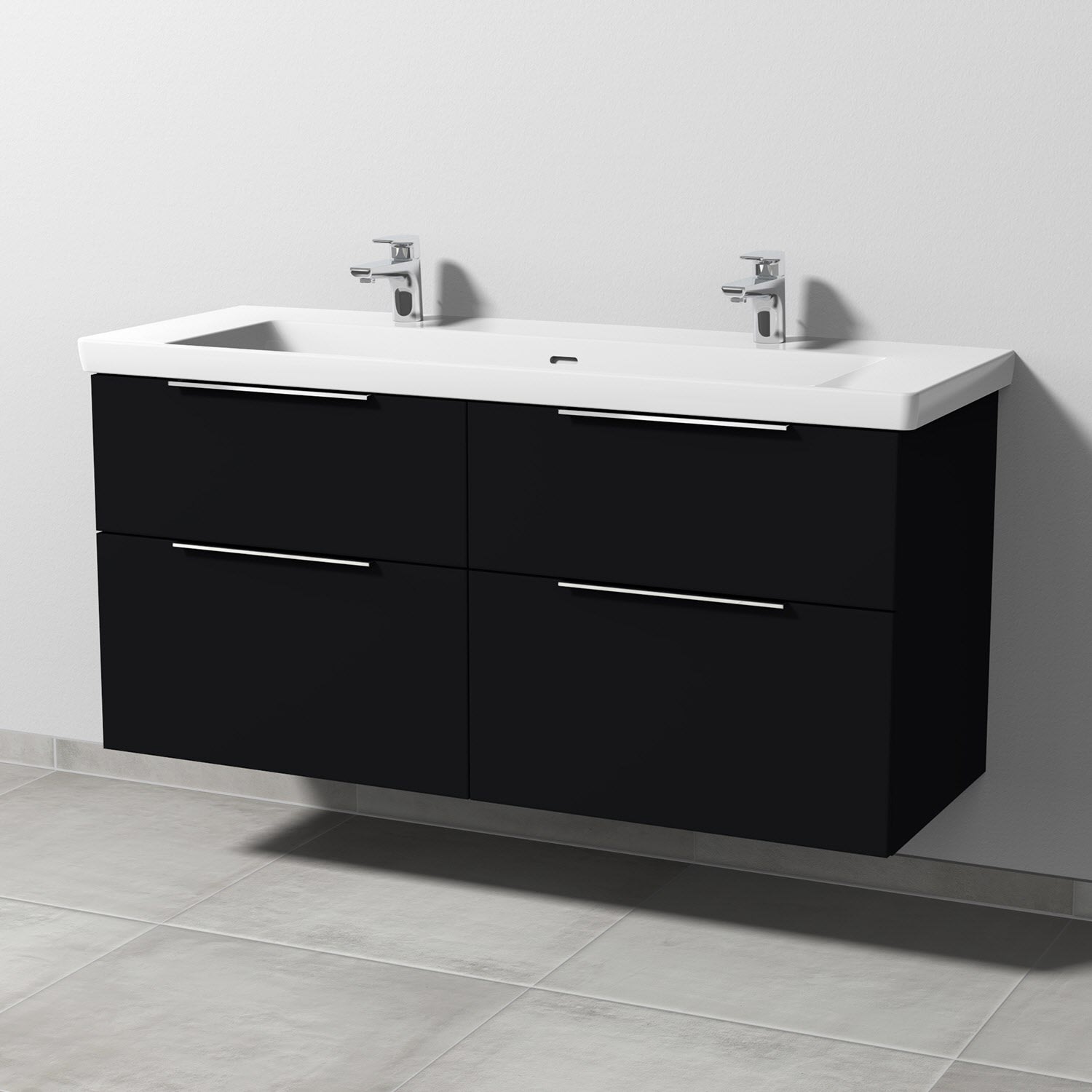 Sanipa 3way Unterschrank 130 cm, 4 Auszüge mit Villeroy & Boch Subway 3.0 Doppelwaschtisch