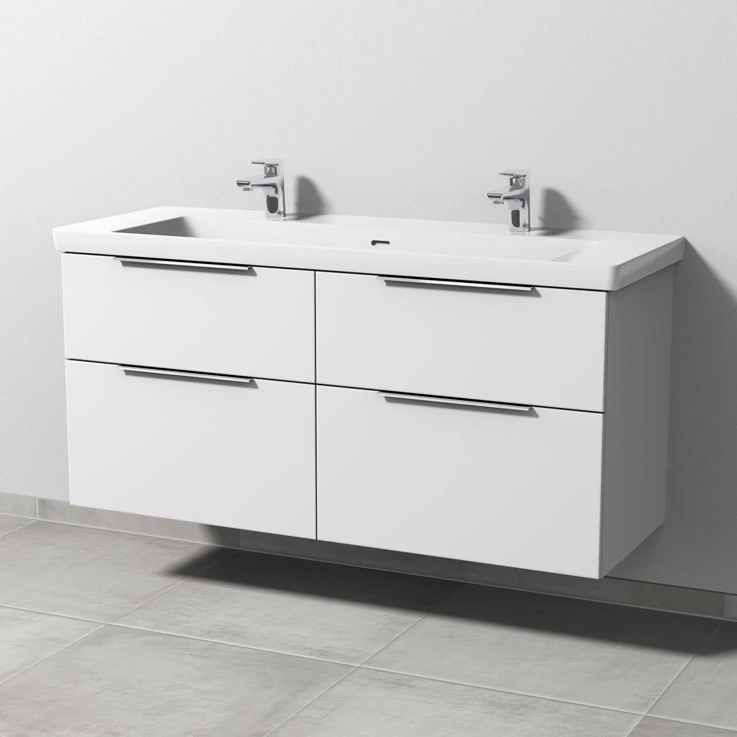Sanipa 3way Unterschrank 130 cm, 4 Auszüge mit Villeroy & Boch Subway 3.0 Doppelwaschtisch