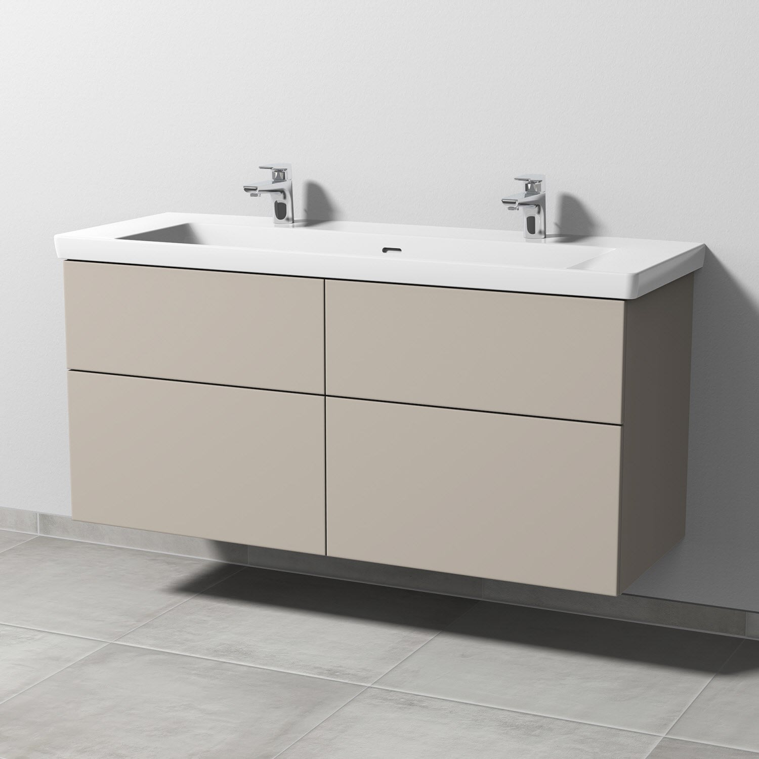 Sanipa 3way Unterschrank 130 cm, 4 Auszüge mit Villeroy & Boch Subway 3.0 Doppelwaschtisch