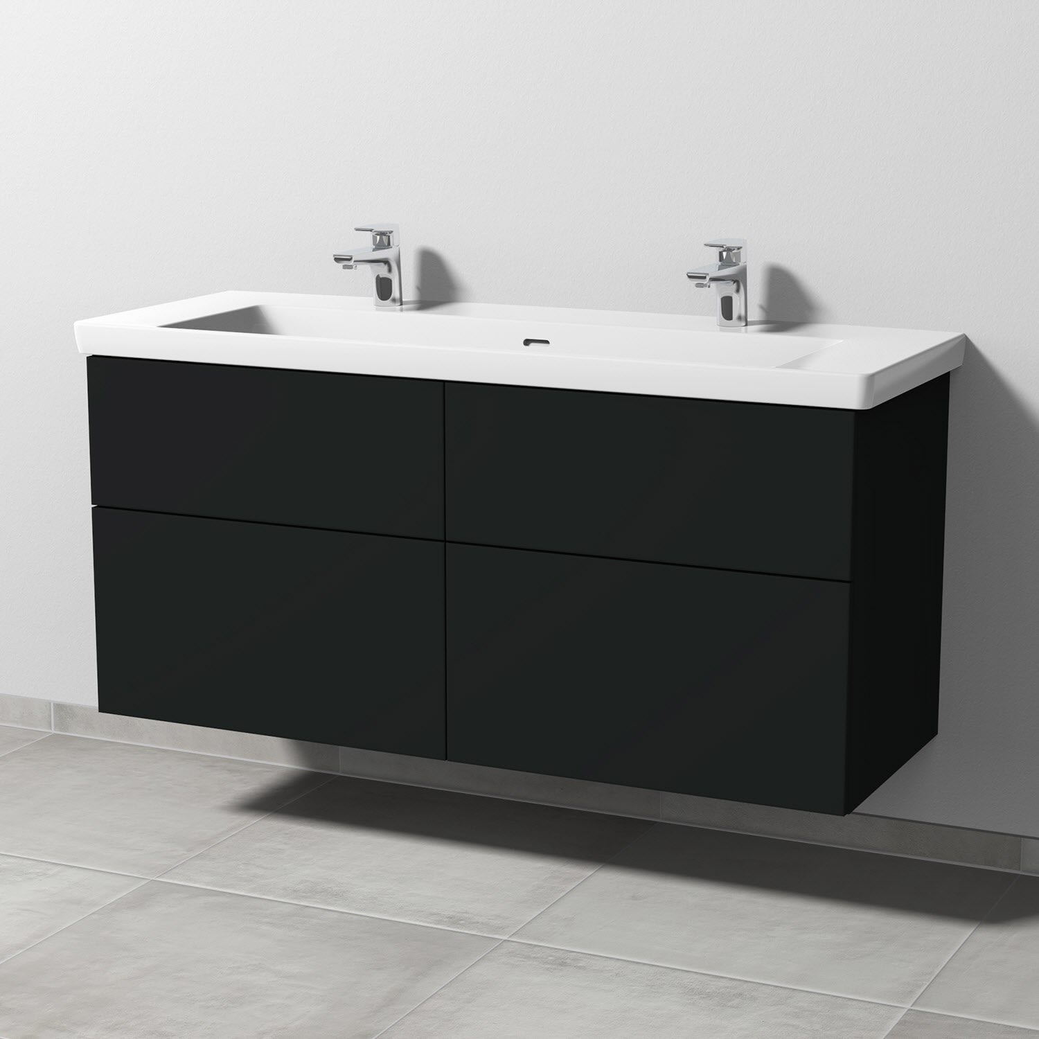 Sanipa 3way Unterschrank 130 cm, 4 Auszüge mit Villeroy & Boch Subway 3.0 Doppelwaschtisch