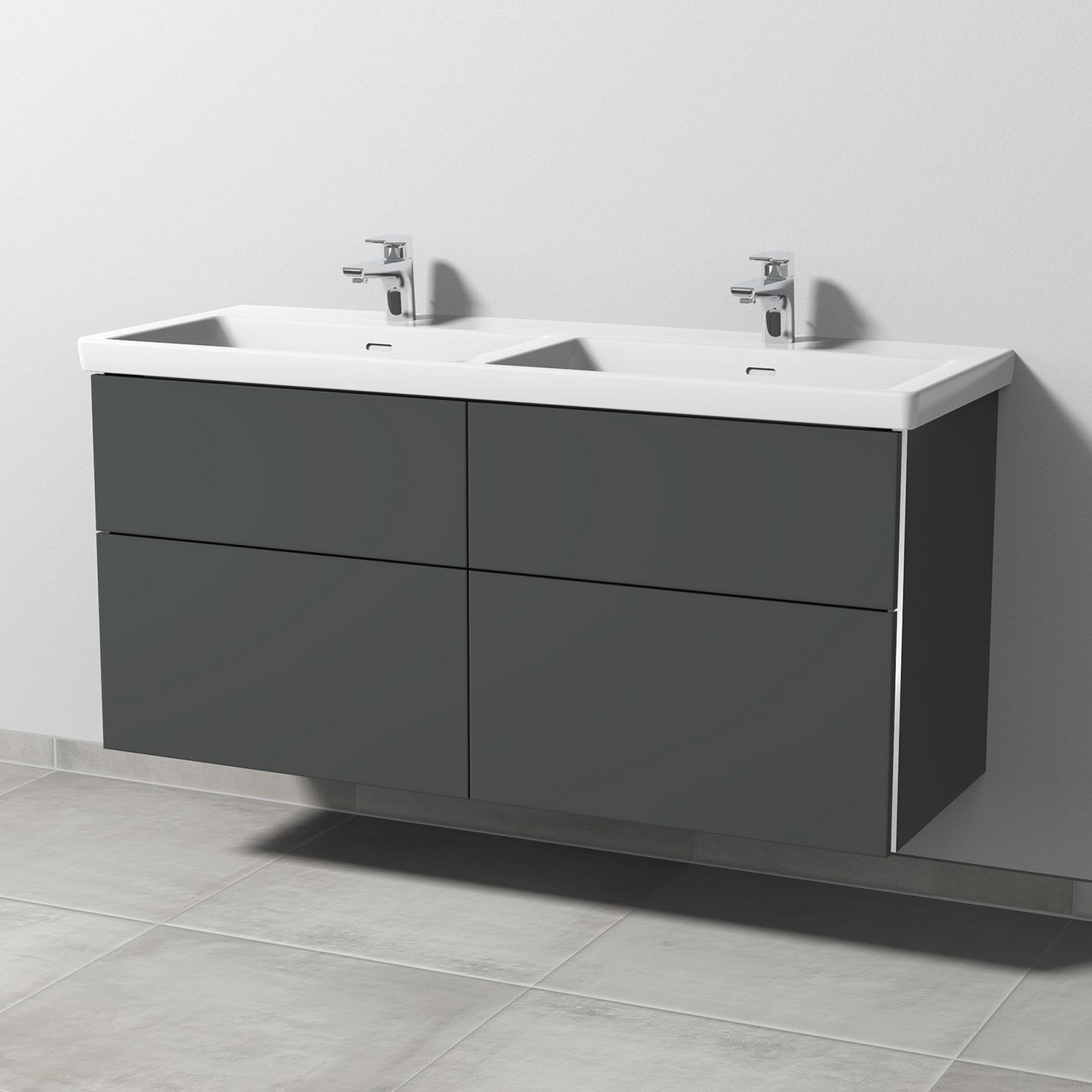 Sanipa 3way Unterschrank 130 cm, 4 Auszüge mit Villeroy & Boch Subway 3.0 Doppelwaschtisch