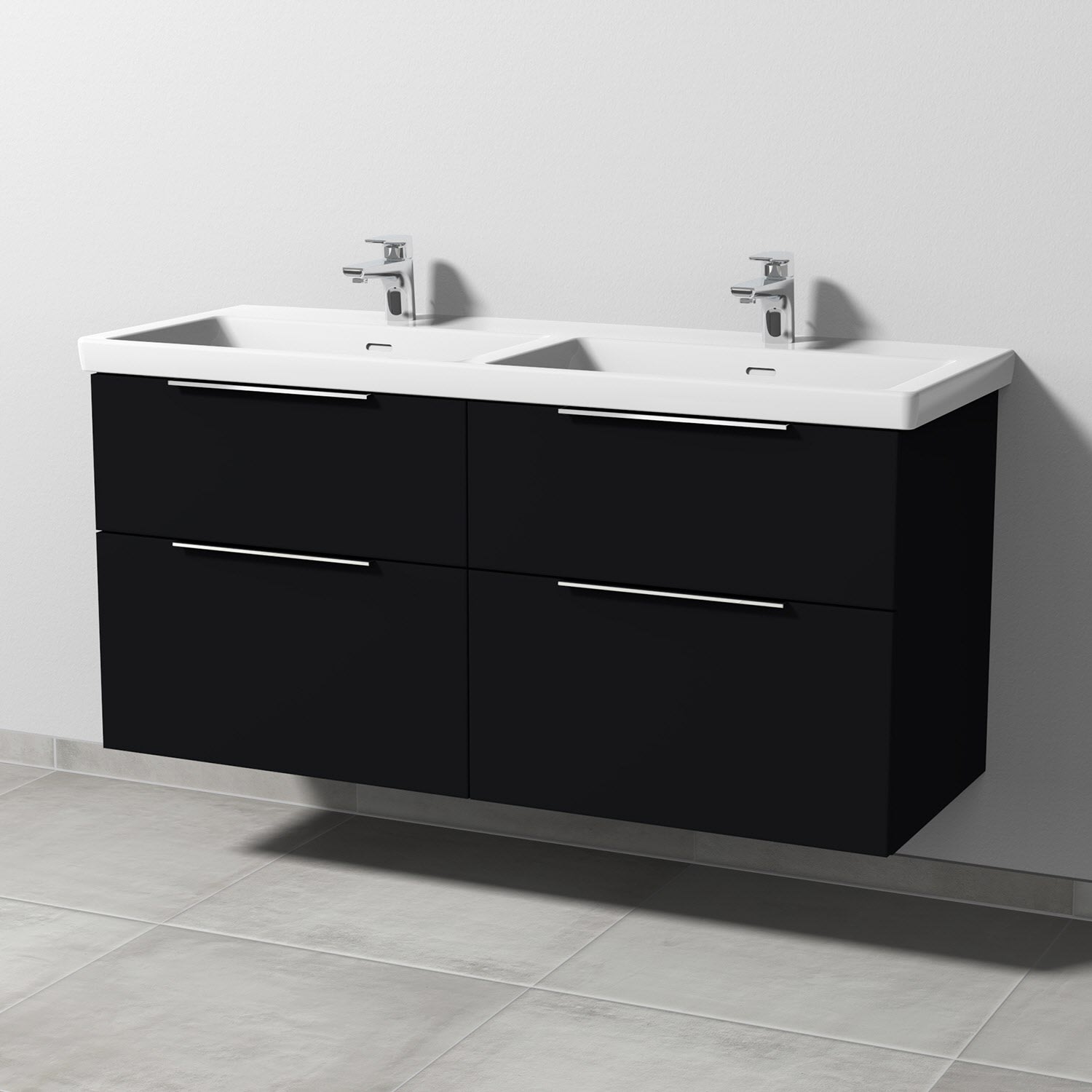 Sanipa 3way Unterschrank 130 cm, 4 Auszüge mit Villeroy & Boch Subway 3.0 Doppelwaschtisch