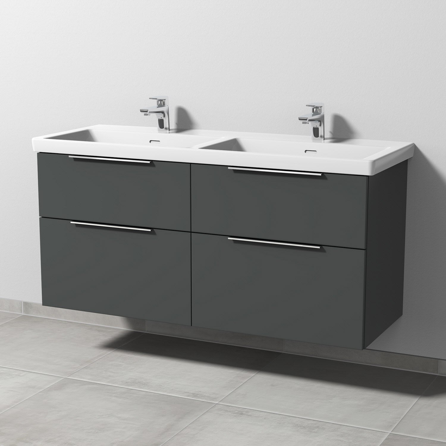 Sanipa 3way Unterschrank 130 cm, 4 Auszüge mit Villeroy & Boch Subway 3.0 Doppelwaschtisch