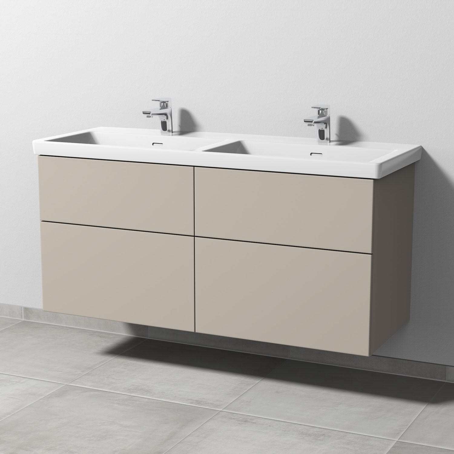 Sanipa 3way Unterschrank 130 cm, 4 Auszüge mit Villeroy & Boch Subway 3.0 Doppelwaschtisch