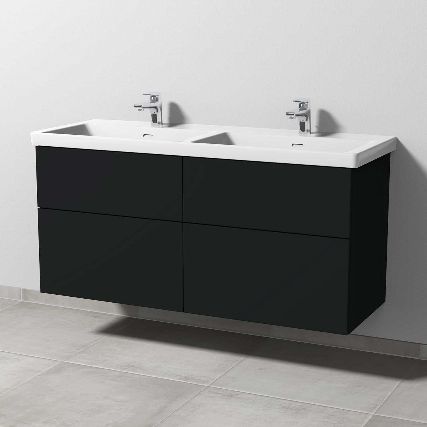 Sanipa 3way Unterschrank 130 cm, 4 Auszüge mit Villeroy & Boch Subway 3.0 Doppelwaschtisch
