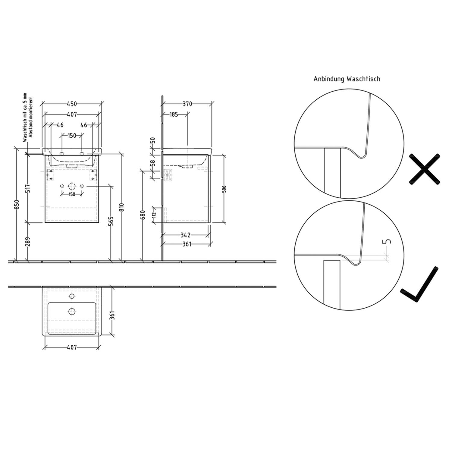 Das Set besteht aus Keramik-Waschtisch Subway 3.0 und Waschtischunterbau. Waschtisch nur mit Möbel montieren, nicht freitragend. Es können Farb- und Strukturabweichungen in den Abbildungen möglich sein.