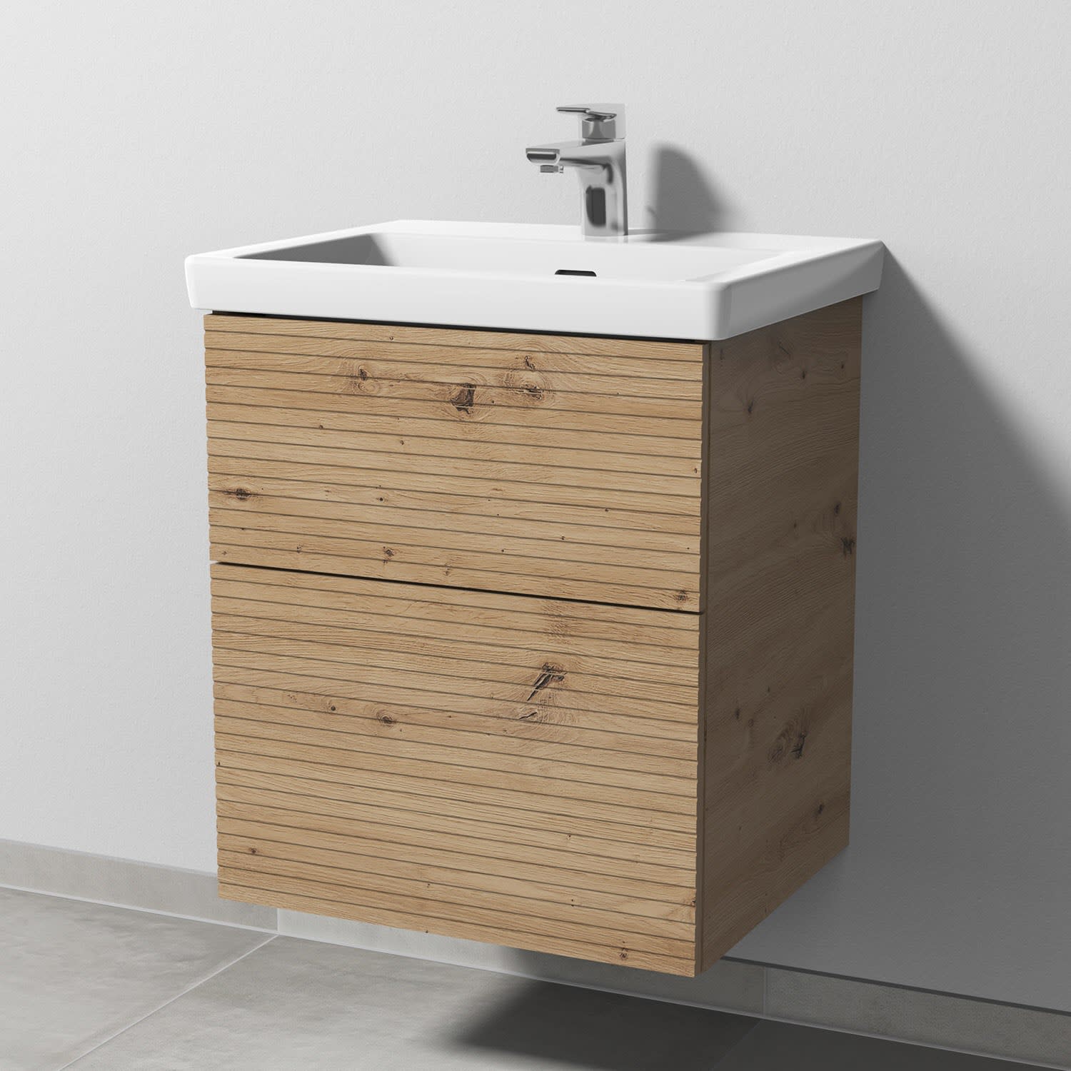 Sanipa 3way-Struktur Unterschrank 55 cm, 2 Auszüge mit Villeroy & Boch Subway 3.0 Waschtisch