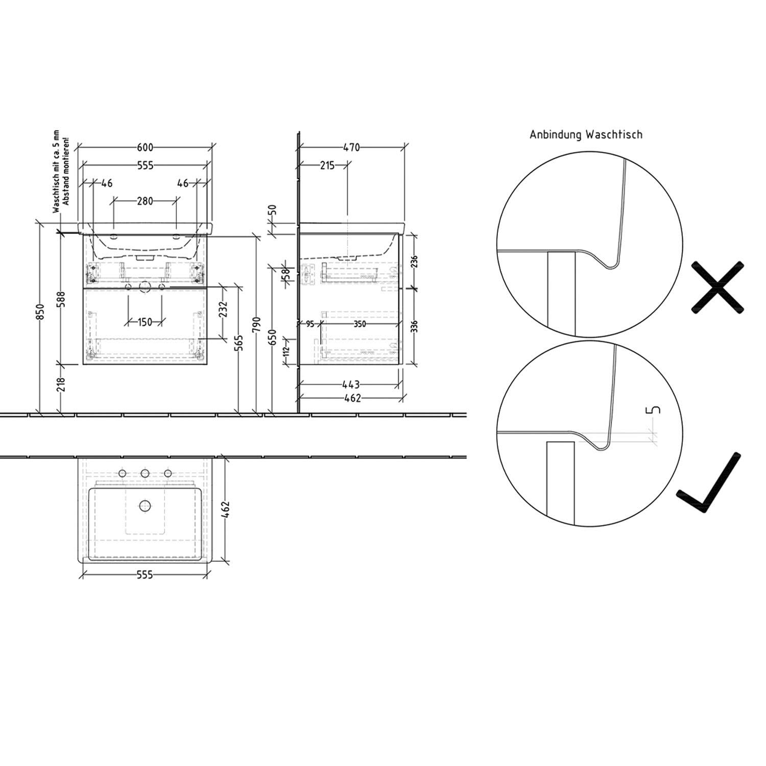 - Maße: Tiefe 47 cm, Höhe 5 cm, Tiefe Beckenkumme 12,1 cm