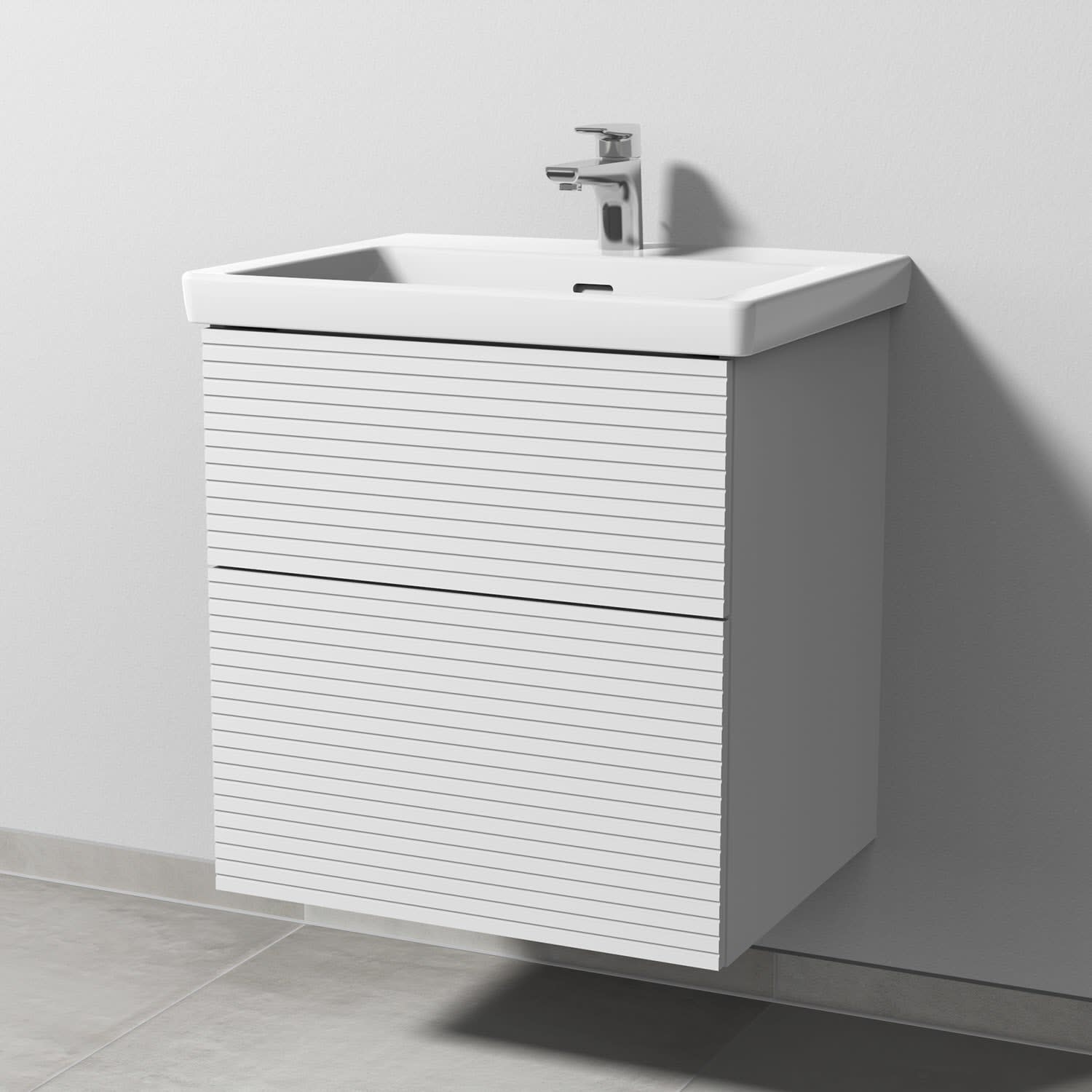 Sanipa 3way-Struktur Unterschrank 60 cm, 2 Auszüge mit Villeroy & Boch Subway 3.0 Waschtisch